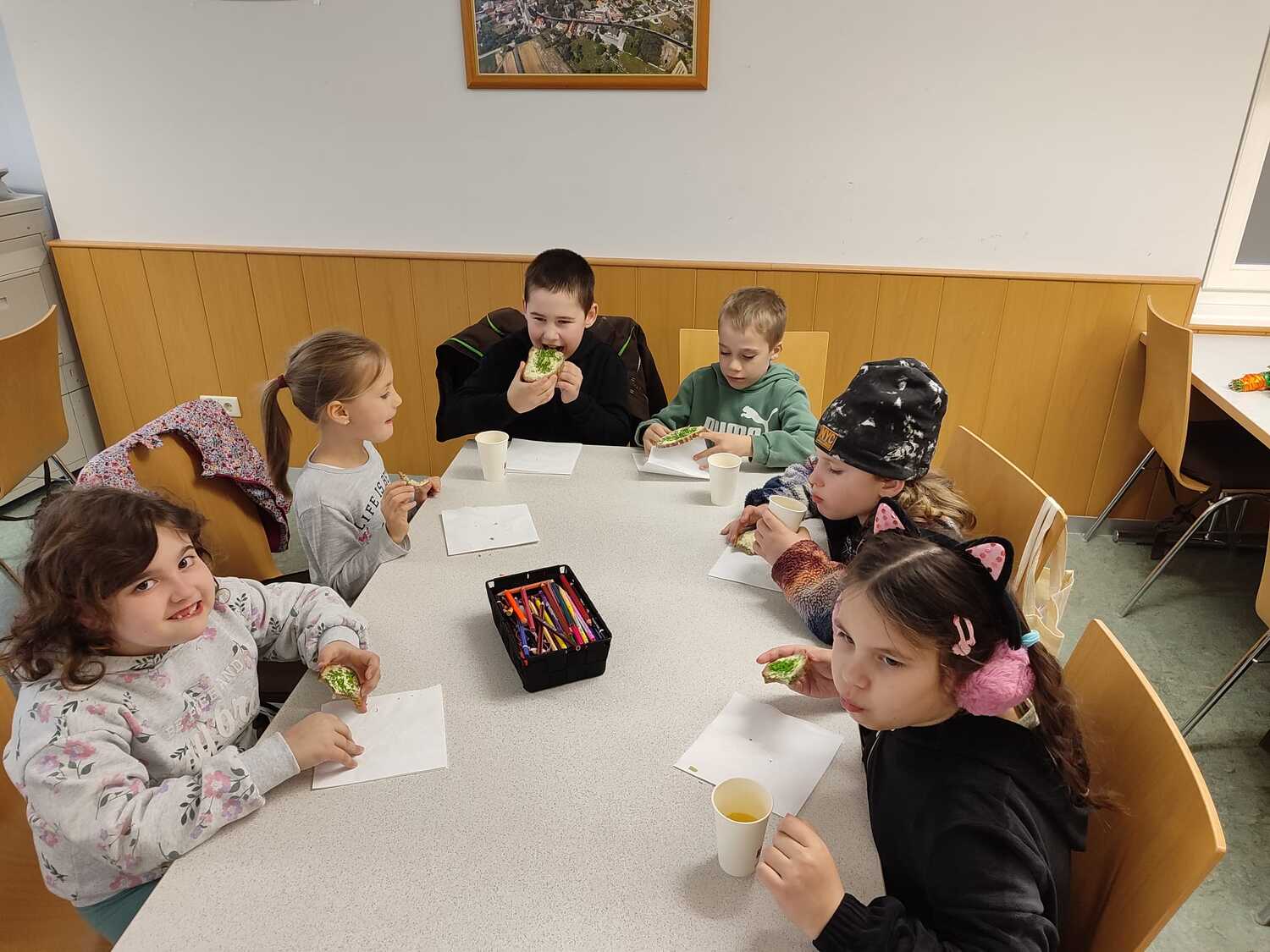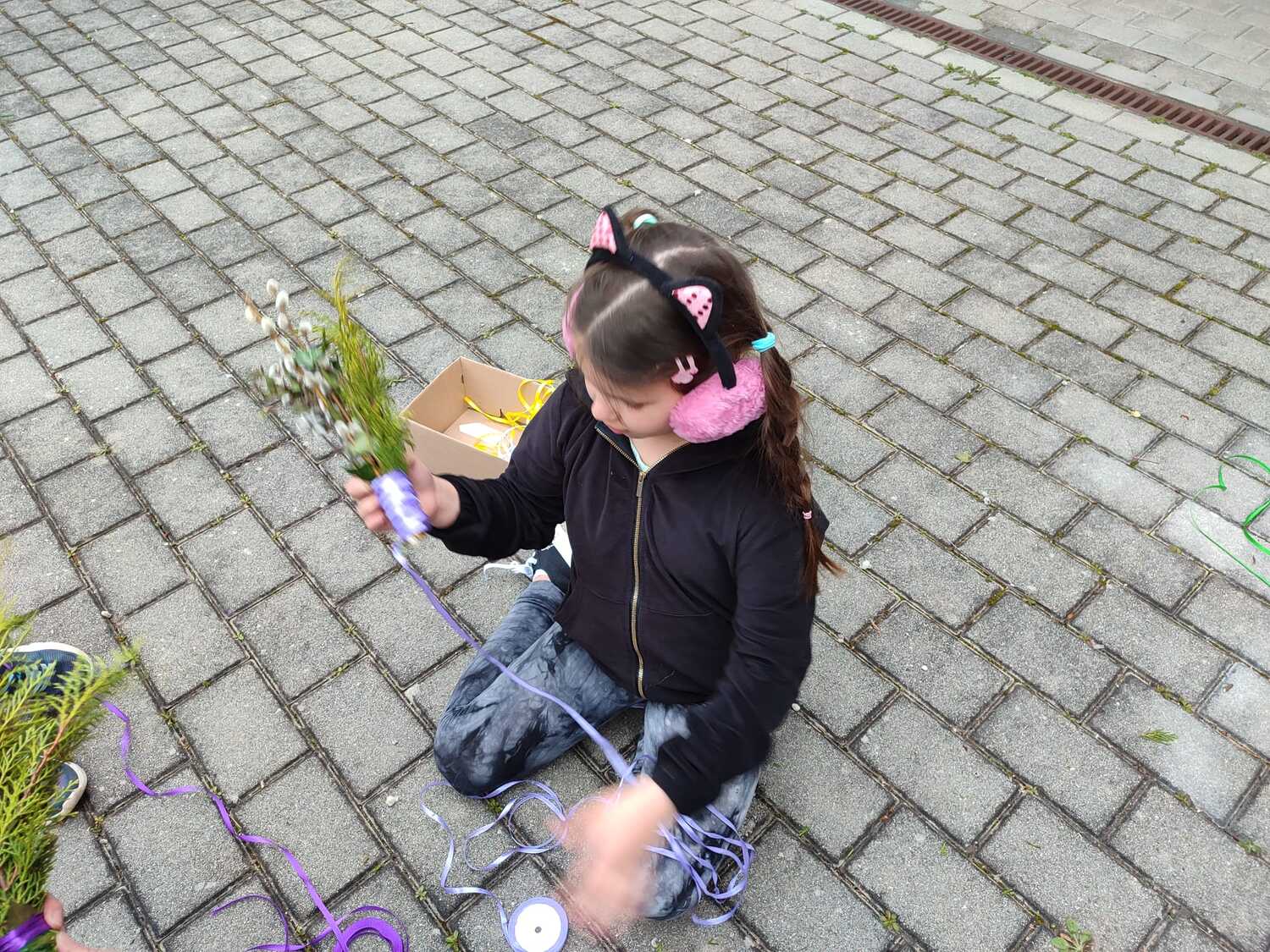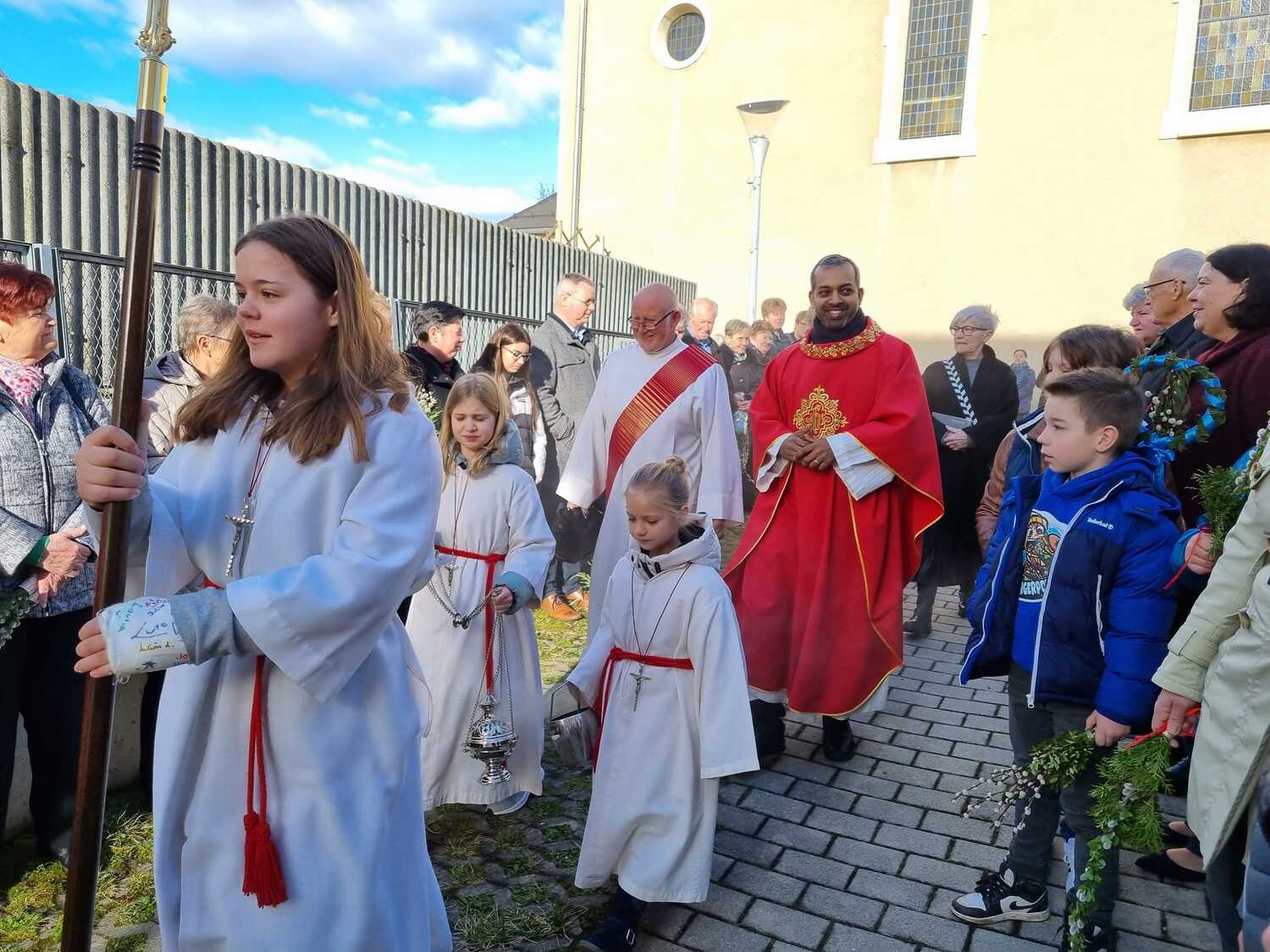 Die Palmbuschen, die von den Kindern in die Kirche getragen wurden, wurden ein paar Tage davor gemeinsam im Pfarrheim gebunden. Die Freude darüber war den Kindern ins Gesicht geschrieben.