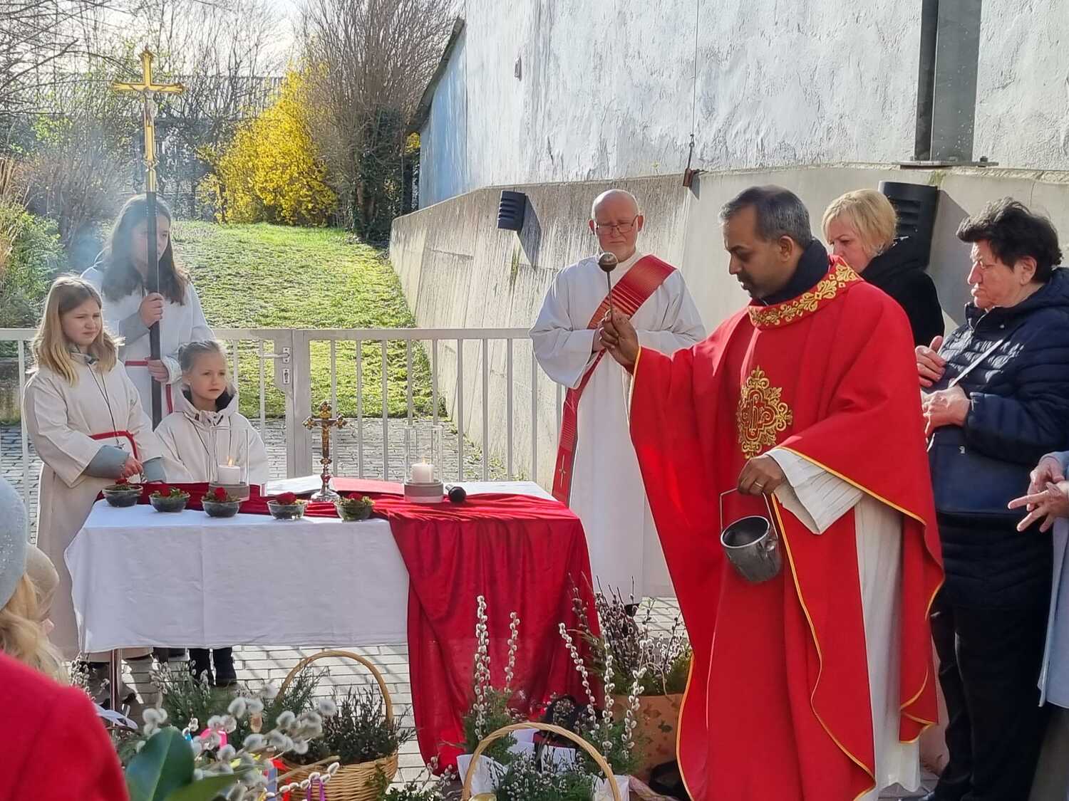 Zur Feier der Liturgie zum Palmsonntag mit Segnung der Palmbuschen trafen sich die Gläubigen der Pfarre Lackenbach vor dem Pfarrheim und zogen in einer kurzen Prozession in die Kirche ein, wo dann gemeinsam Messe gefeiert wurde.