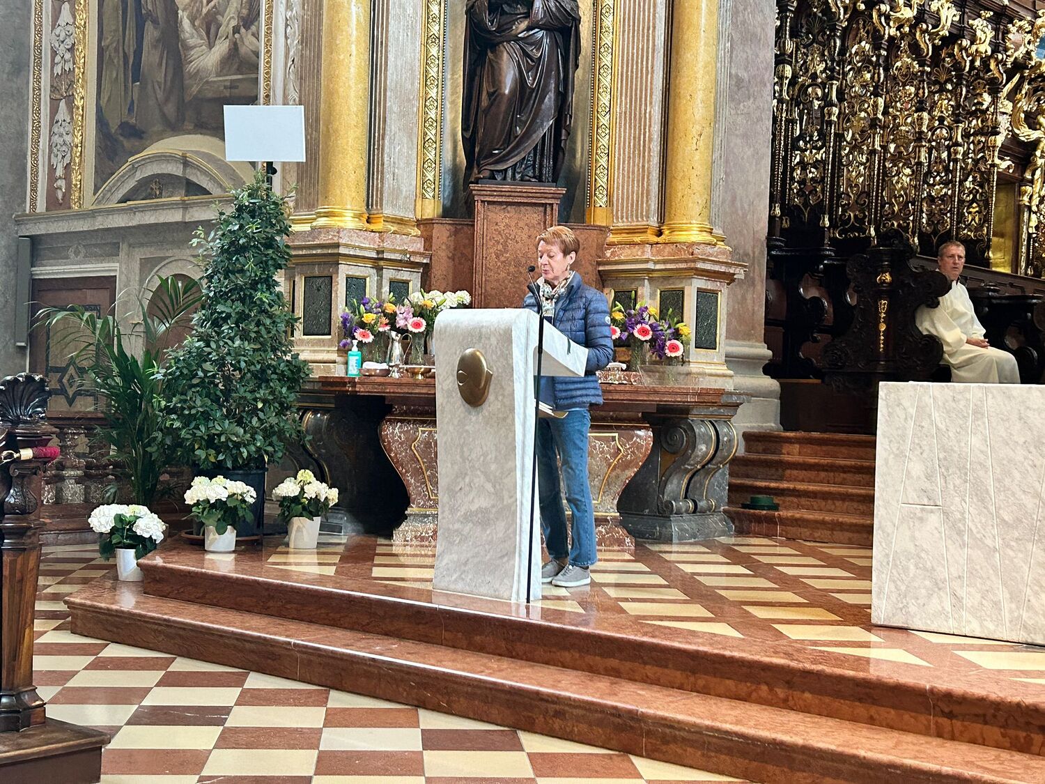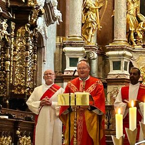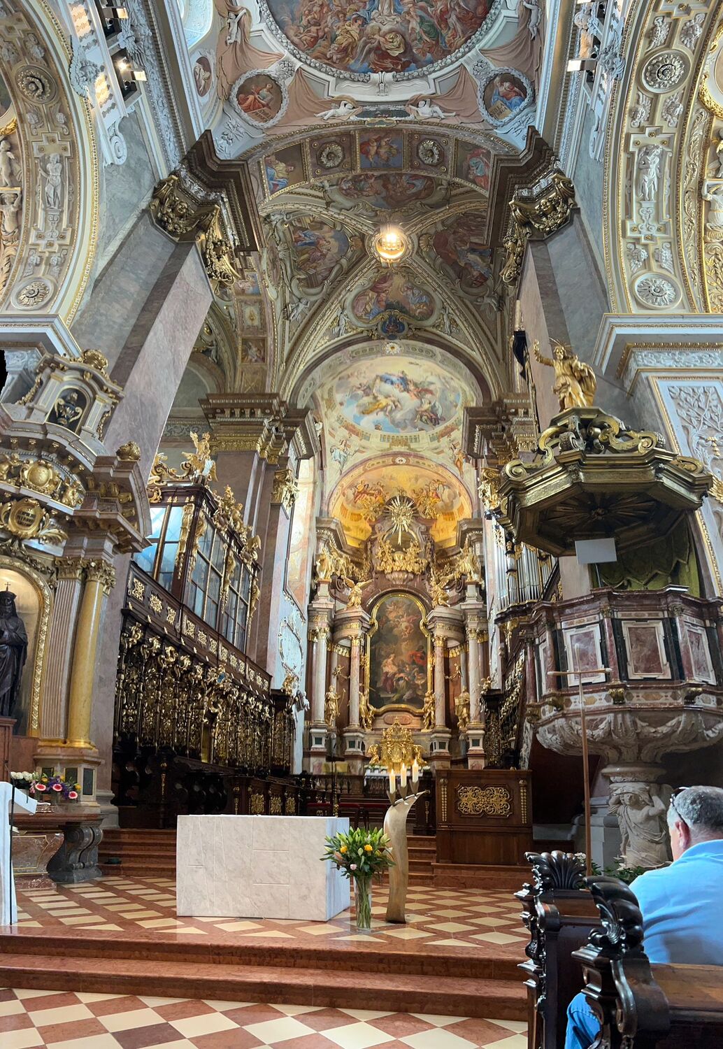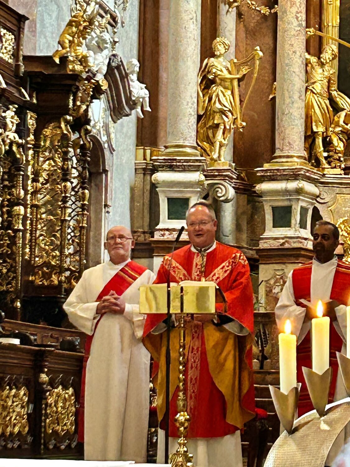 Um 9.00 Uhr feierten der Propst von Stift Klosterneuburg, Mag. Anton Höslinger, Dechant Shinto und Diakon Hubert Zach mit den Reiseteilnehmern einen festlichen Gottesdienst in der Stiftskirche. Die musikalische Gestaltung besorgte Christa Reiner. Zur Hl. Messe konnte Dechant Shinto auch drei Schwestern aus seiner Heimat Indien begrüßen, die ihren Dienst in einem Pflegekompetenz-Zentrum in Kritzendorf verrichten.