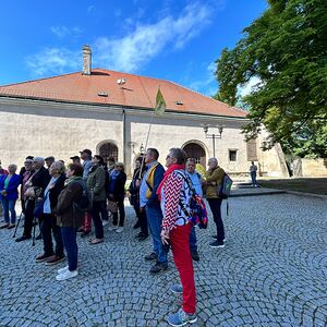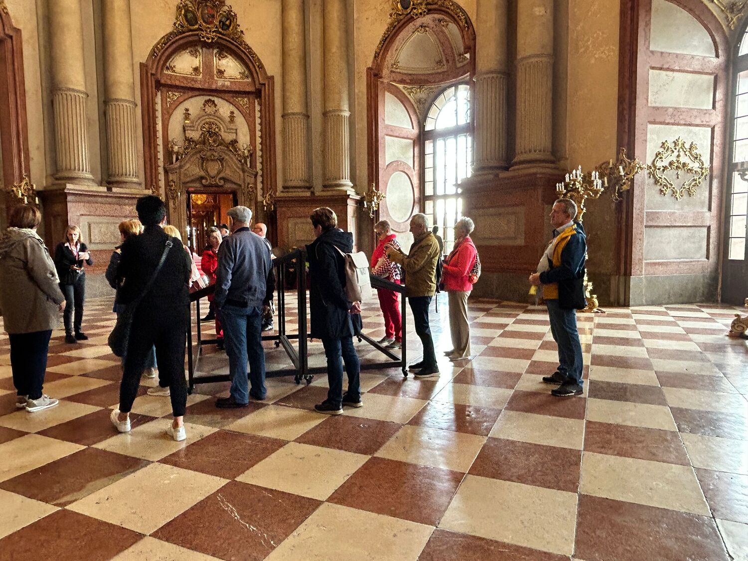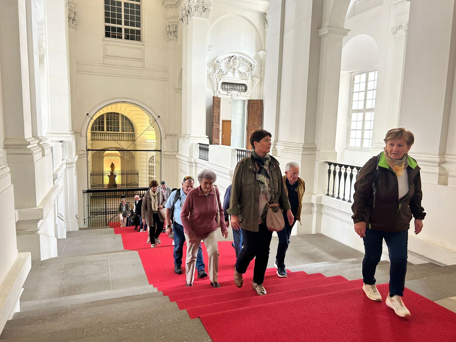 Nach dem Gottesdienst erfolgte in zwei Gruppen die Besichtigung des Stiftes mit der Stiftskirche, dem Marmorsaal, dem Kreuzgang, der Leopoldskapelle mit dem weltberühmten Verduner Altar und der Grabstätte des Heiligen Leopold, den Repräsentations- und Wohnräumen von Kaiser Karl VI., sowie ein kurzer Rundgang im Stiftsweingut (mit Weinverkostung).