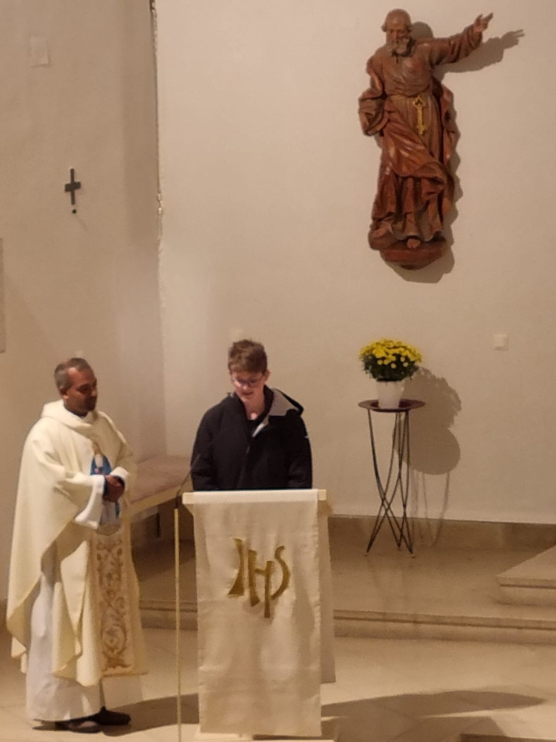 In der Predigt wurden uns erstmal die historischen Wurzeln und die Entstehung des Rosenkranzes nähergebracht. Wir erhielten jedoch auch die Botschaft, dass wir durch die Rosenkranzgesätzchen immer wieder die Chance erhalten, zu erkennen, dass Jesus Christus bei uns ist und was der Kern seiner Botschaft und damit unseres Glaubens ist.