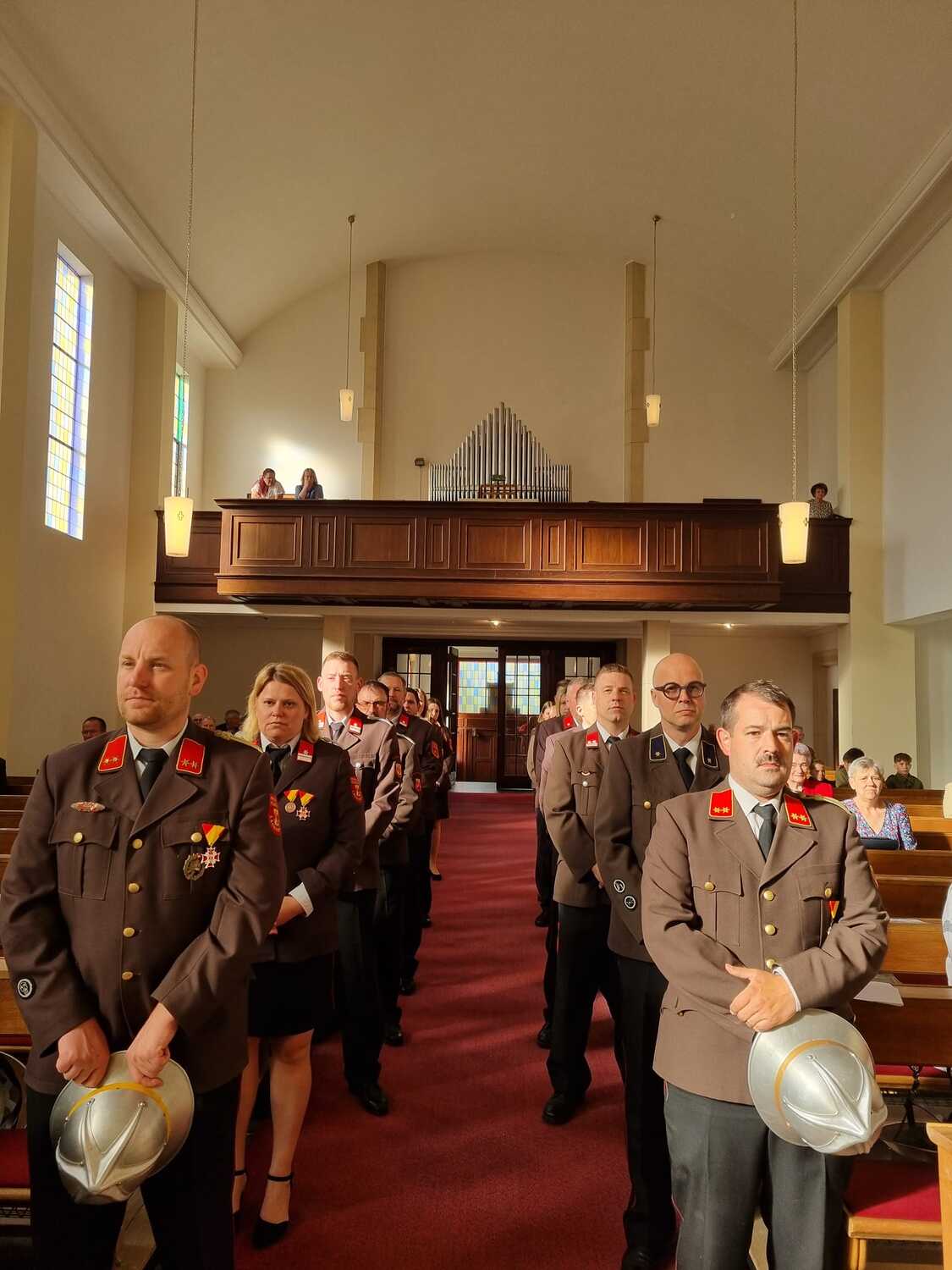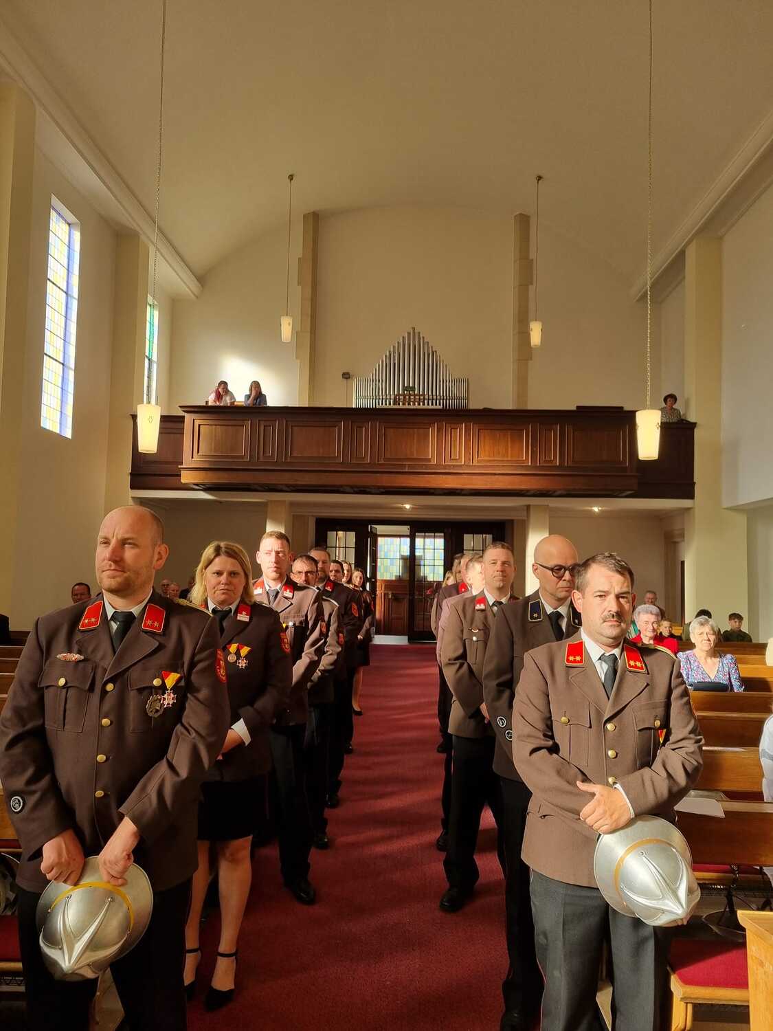 Die Feuerwehr Lackenbach findet sich aber nicht nur rund um den 04. Mai in der Kirche ein, sondern begleitet auch die Fronleichnams- und Allerheiligenprozession in der Pfarrgemeinde. Die Mitglieder*innen übernehmen dabei auch immer sehr gerne die Lektorendienste und sind somit noch aktiver in den Messablauf eingebunden, so wie auch in diesem Jahr am Tag der Feuerwehr, welchen 20 aktive und 8 Feuerwehrjugendmitglieder beiwohnten. Noch ein schöner Akt der Verbundenheit ist allerdings, dass einige Mitglieder der Feuerwehrjugend auch im Dienst als Ministrant*innen stehen und mit ihren Uniformen an diesem besonderen Tag ihre Arbeit beim Altar während der Messfeier verrichten durfen.
