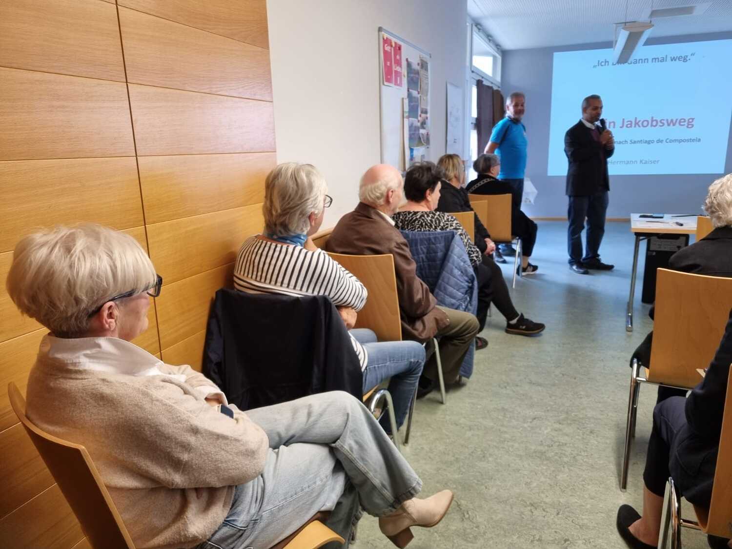 Viele interessierte Zuhörer:innen waren gekommen, um seinen persönlichen Erfahrungen, Herausforderungen und spirituellen Eindrücken zu lauschen. Der Vortrag gab nicht nur Einblick in die körperlichen und logistischen Aspekte einer solchen Pilgerreise, sondern auch in die inneren Beweggründe und Erkenntnisse, die Hermann unterwegs gesammelt hat.