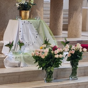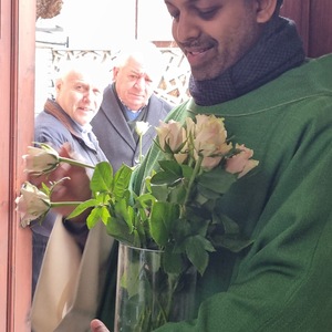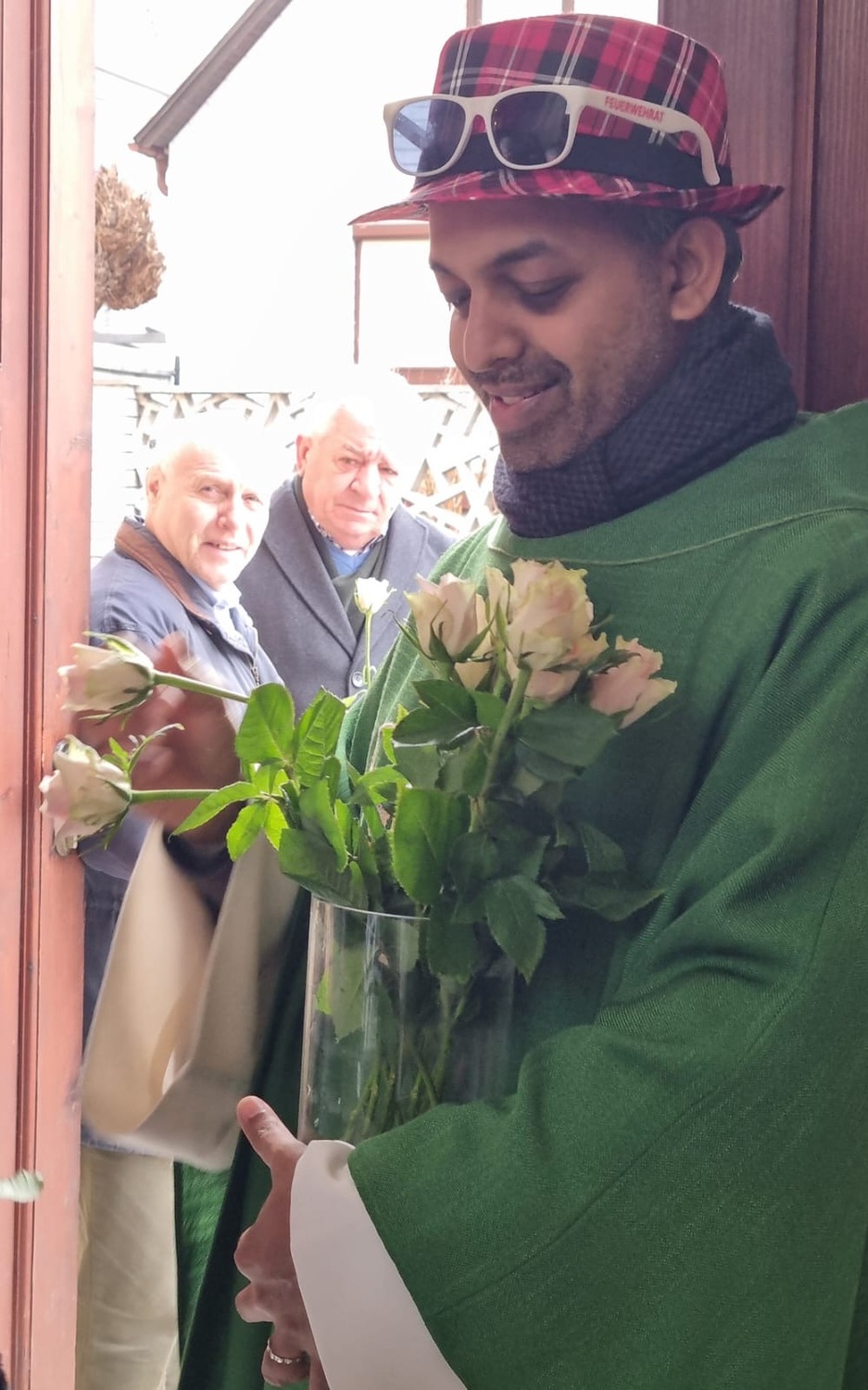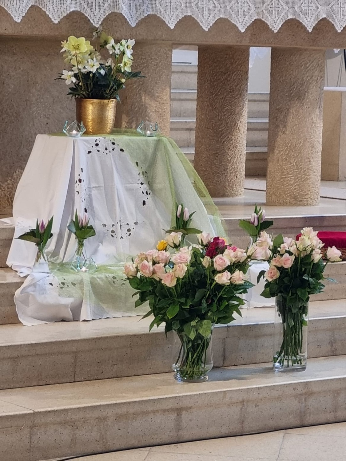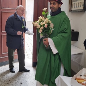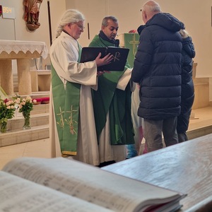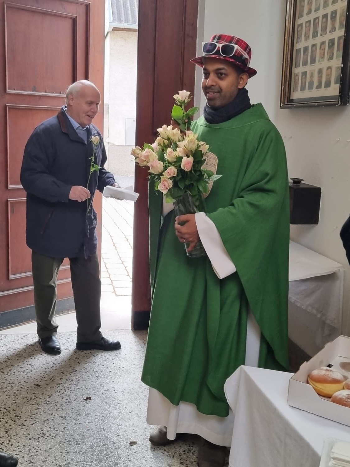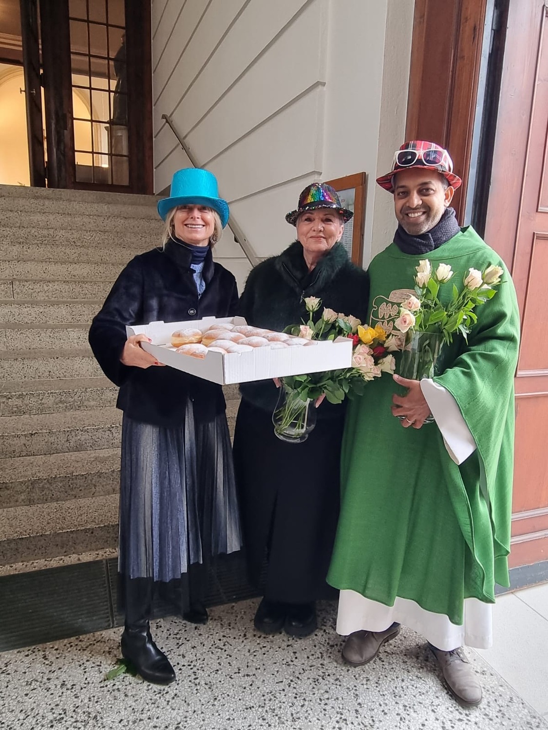 Da der Gottesdienst in zeitlicher Nähe zum Valentinstag stand, fand eine Paarsegnung statt und die Besucherinnen und Besucher durften sich über Blumen und Krapfen als Zeichen der Wertschätzung und Nächstenliebe freuen.