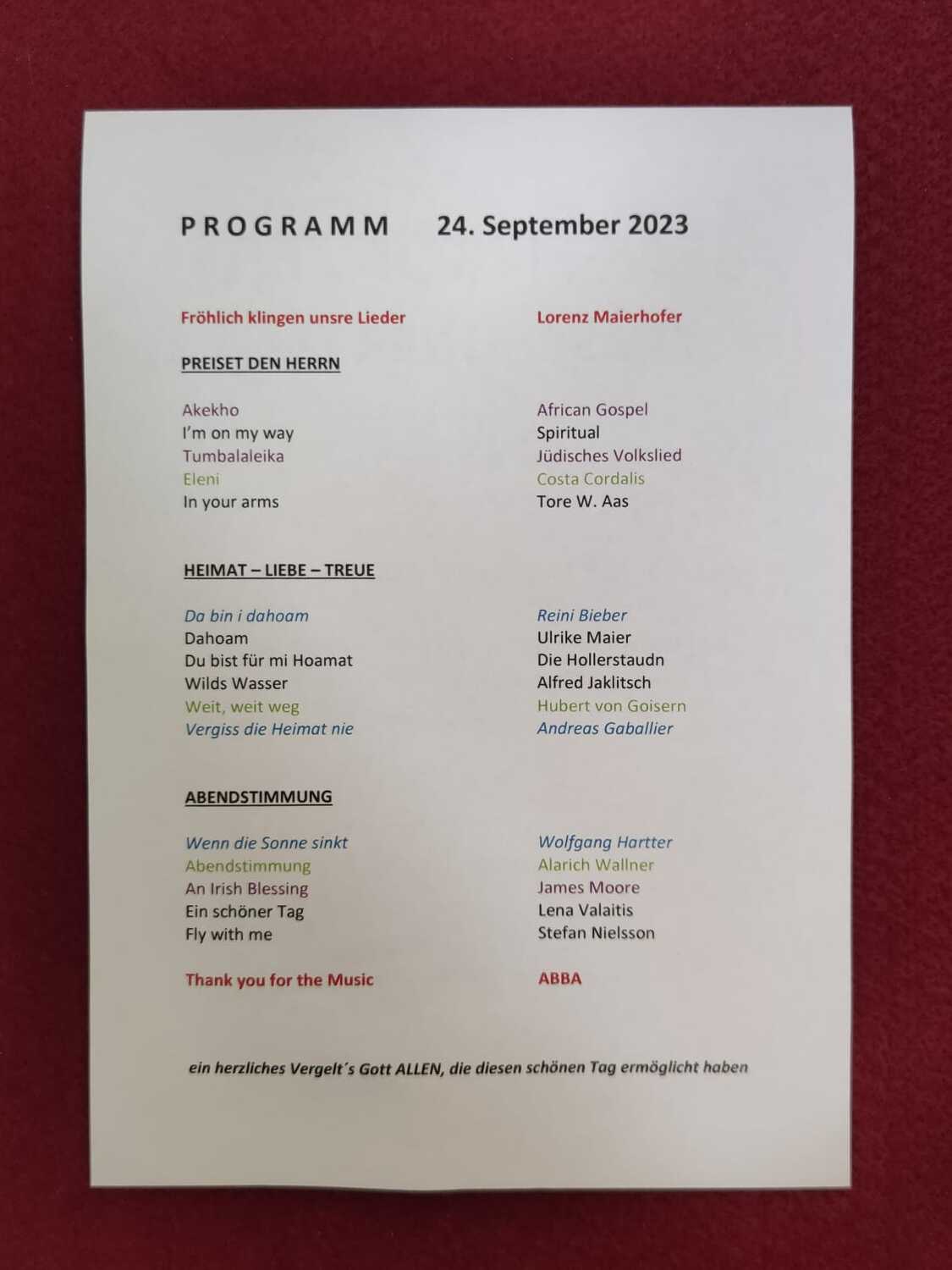 Der Kirchenchor Lackenbach veranstaltete am 24.9.2023 in der Pfarrkirche ein Benefizkonzert unter dem Motto „Ein schöner Tag“, geleitet von Bernadette Friedl.