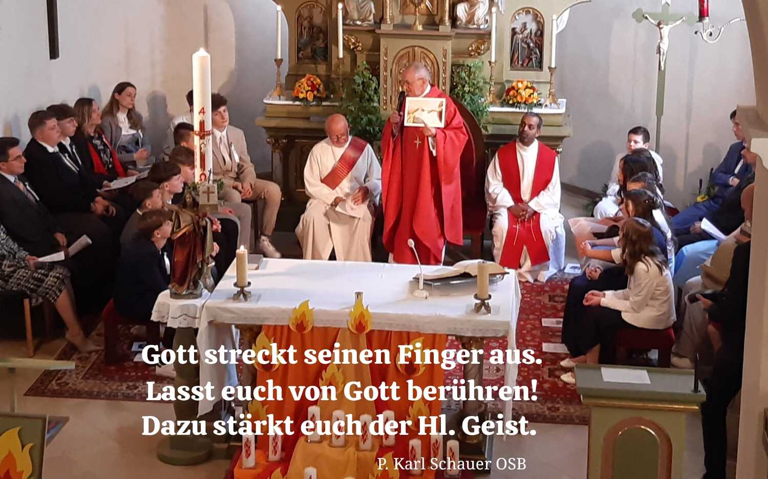 Mit diesen Worten spendete Bischofsvikar Pater Karl Schauer am 13. April in Weppersdorf 11 Jugendlichen das Sakrament der Firmung, das die Taufe vollendet und die Gabe des Heiligen Geistes schenkt.
