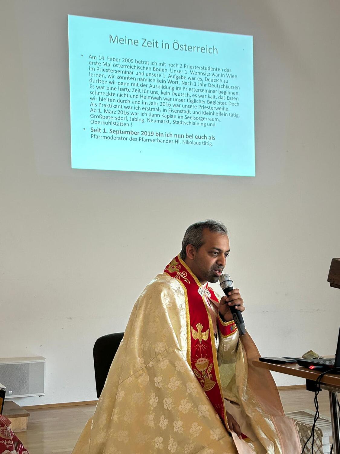 Dechant Pf. Shinto gab den interessierten Zuhörern auch private Einblicke in seine Familie, mit der er Dank Handy usw. regelmäßig in Verbindung treten kann. Den Pfeffer bringt er von seinen jährlichen Heimatbesuchen nach Kobersdorf mit, er ist frischer, schmeckt intensiver und riecht nach Heimat.
