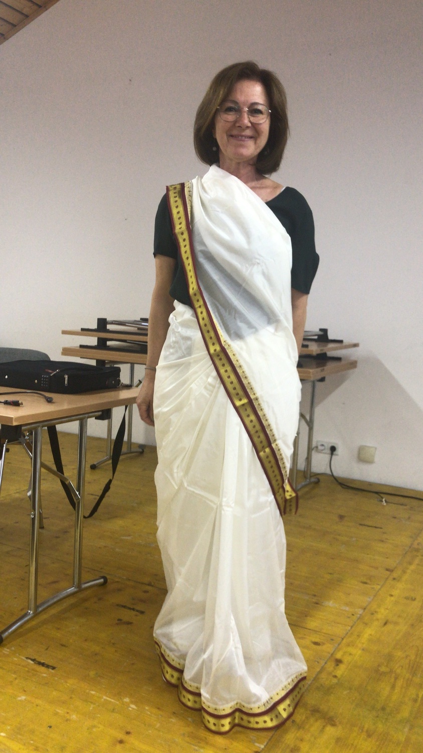 Ein Sari, das traditionelle Kleid der indischen Frau, wurde anprobiert und Pf. Shinto kleidete sich in sein aufwendig handbesticktes farbenfrohes Primiz-Festmessgewand.