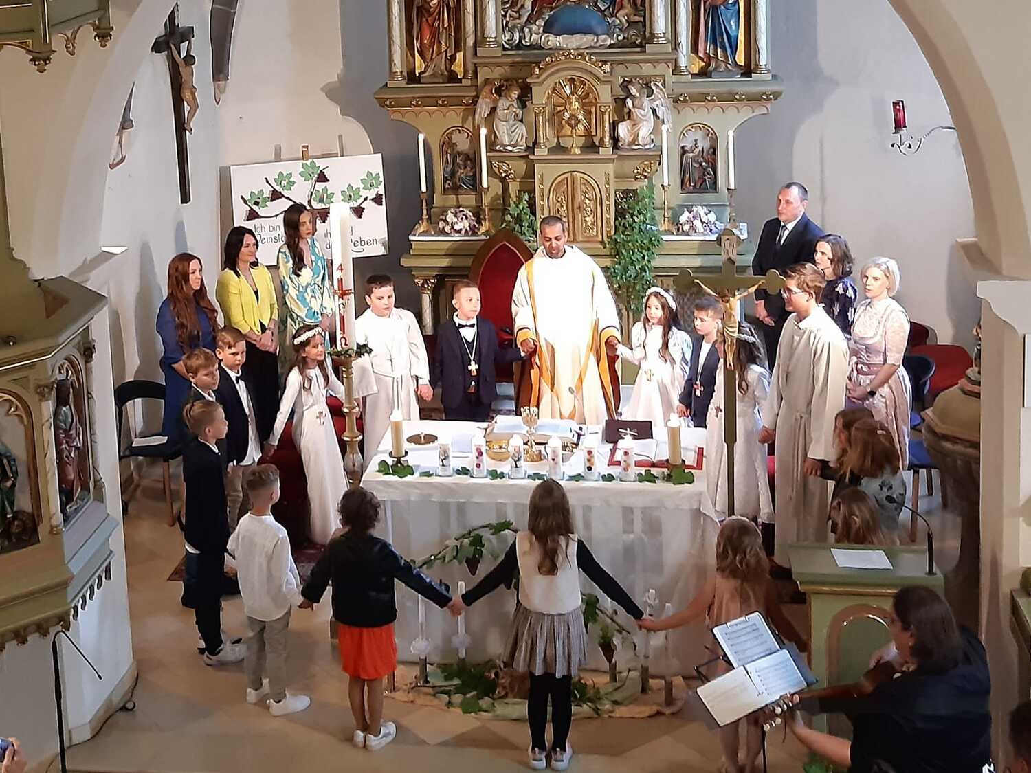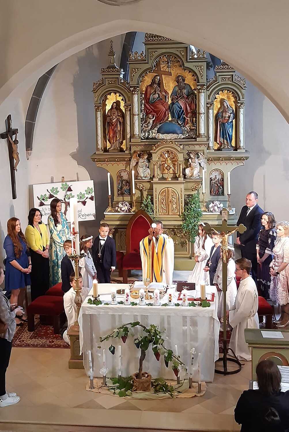 Mit dem Bibelzitat „Ich bin der Weinstock, ihr seid die Reben“ haben sich die Kinder schon sehr lange auf dieses besondere Ereignis vorbereitet.