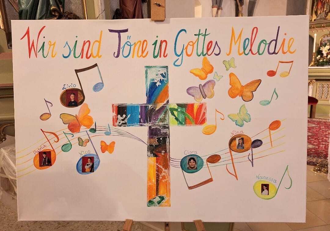 „Du bist ein Ton in Gottes Melodie“ dieses Thema haben die Kinder, ihre Tischmütter und Frau Religionslehreren Doris Horvath für die wochenlange Vorbereitung gewählt. Eine Melodie braucht Gemeinschaft. In einem Orchester spielt niemand allein. Es braucht viele Instrumente, viele Menschen, damit das Lied wirklich klingt. So ist es auch im Glauben: Wir brauchen einander.