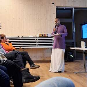Besonders wertvoll waren die vielen persönlichen Erzählungen, mit denen Pfarrer Varghese seine Ausführungen lebendig und greifbar machte. Im Anschluss nahm er sich ausführlich Zeit, die zahlreichen Fragen aus dem Publikum zu beantworten – ein Austausch, der von großem Interesse und gegenseitiger Wertschätzung geprägt war.