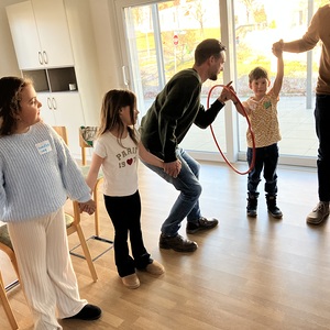 So wurden in verschiedenen Kreisspielen Themen wie gemeinsame Interessen, Hobbys aber auch Teamwork in den Vordergrund gestellt. Eine besondere Herausforderung war der “Eier-Flyer”, bei dem es das Ziel war mit Hilfe von Papier, Schere, Klebeband und Strohhalmen ein rohes Ei so zu präparieren, dass es bei einem Sturz aus ca. 3 Metern Höhe nicht kaputt ging.