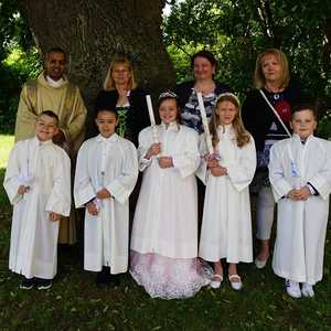 Am Samstag, dem 28. Mai wurden 5 Kinder in die Mahlgemeinschaft Jesu aufgenommen. Sie zogen mit ihren Paten, der Frau Religionslehrerin und den brennenden Taufkerzen in die wunderschön geschmückte Kirche ein und feierten ein Fest, das ihnen lange in Erinnerung bleiben wird.