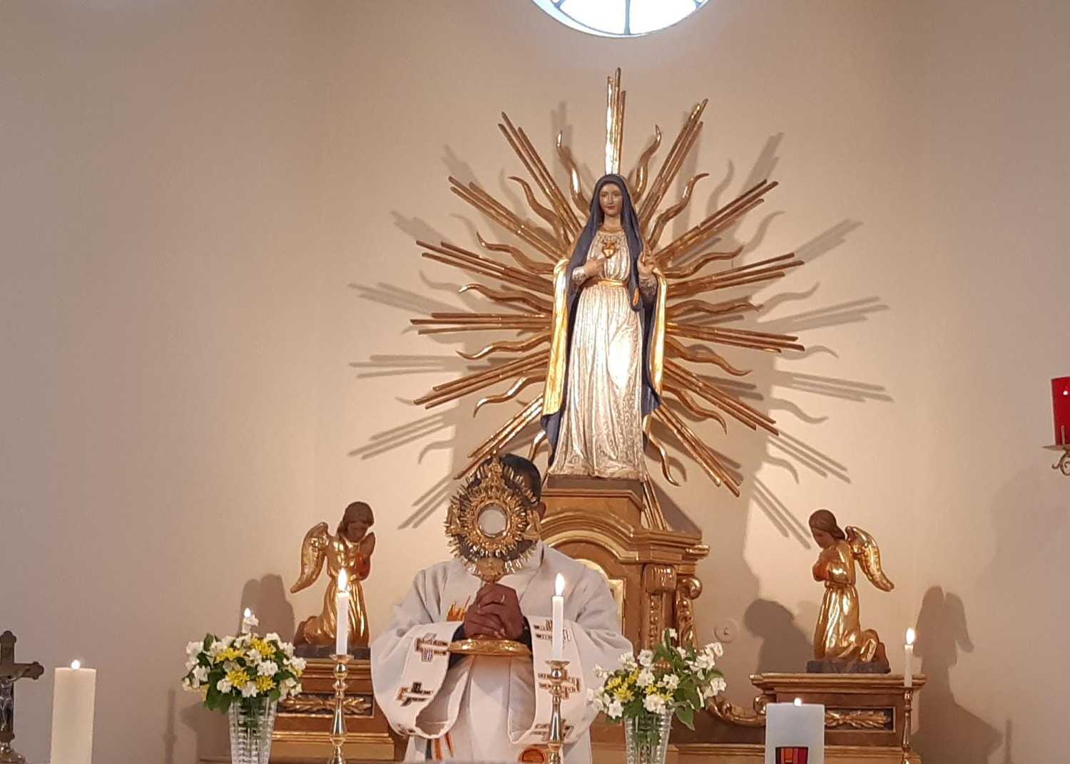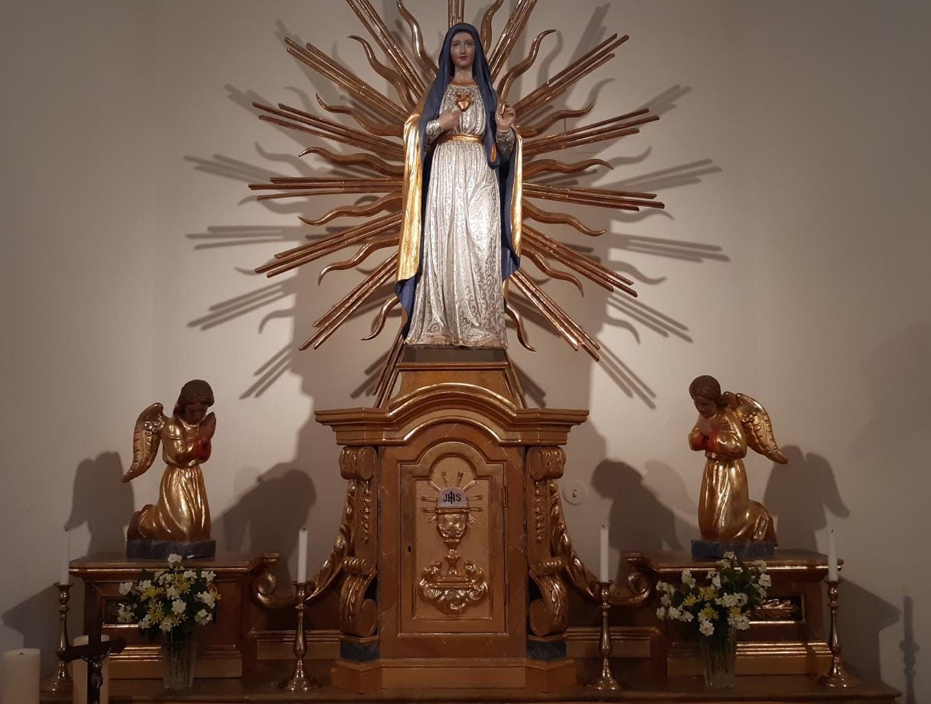 Doch wollten wir nicht alles „ins Wasser fallen lassen“ und feierten am Abend in Tschurndorf eine Maiandacht mit eucharistischem Segen. Im gemeinsamen Gebet und Gesang stand Maria im Mittelpunkt. Sie begleitet uns im Leben als Mutter Gottes, aber auch als eine Frau aus dem Volk. So wie sie sich den Herausforderungen ihres Lebens gestellt hat, kann sie Vorbild für uns alle sein.