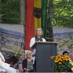 Die 800-Jahr-Feier, die am 14. August begangen wurde, war ein gelungenes Fest, zeigte sich doch das Wetter von seiner besten Seite. Begonnen wurde der Tag mit einem ökumenischen Festgottesdienst mit Hr. Pfarrer Stefan Grauwald und unserem Hr. Pfarrer Shinto Michael. Mitgestaltet wurde die Feier von den Kindern, die außerhalb der Kirche einen Kinderwortgottesdienst feierten und dann mit ihren selbstgestalteten Herzplakaten dazu kamen. Als kleine Erinnerung verteilten die Kinder am Ende des Festes selbstgebastelte Herzen mit dem Bibelspruch zum heutigen Evangelium Joh. 15,12: "Liebt einander, so wie ich euch geliebt habe."