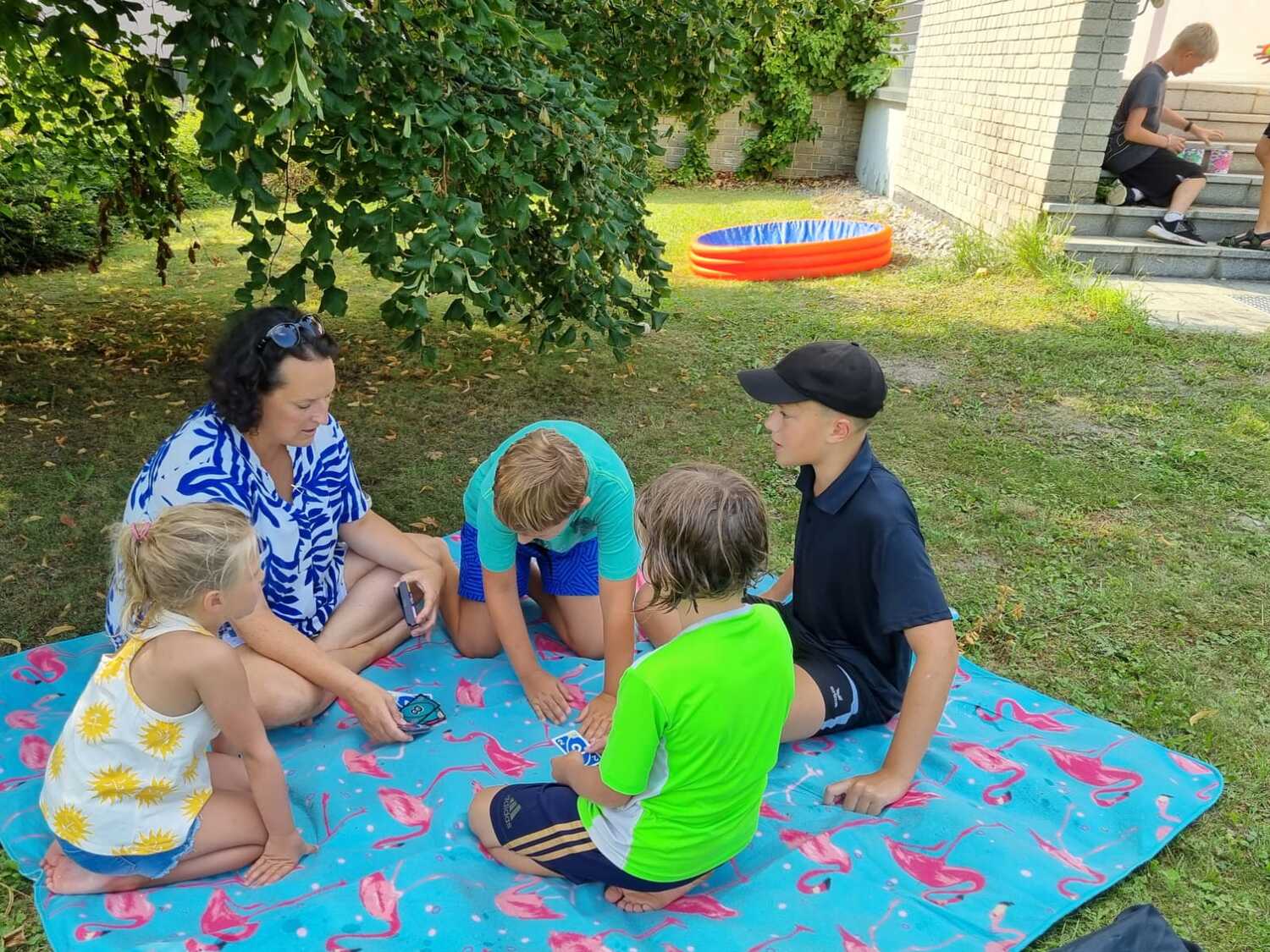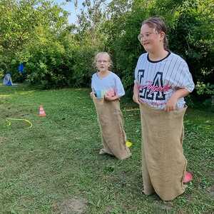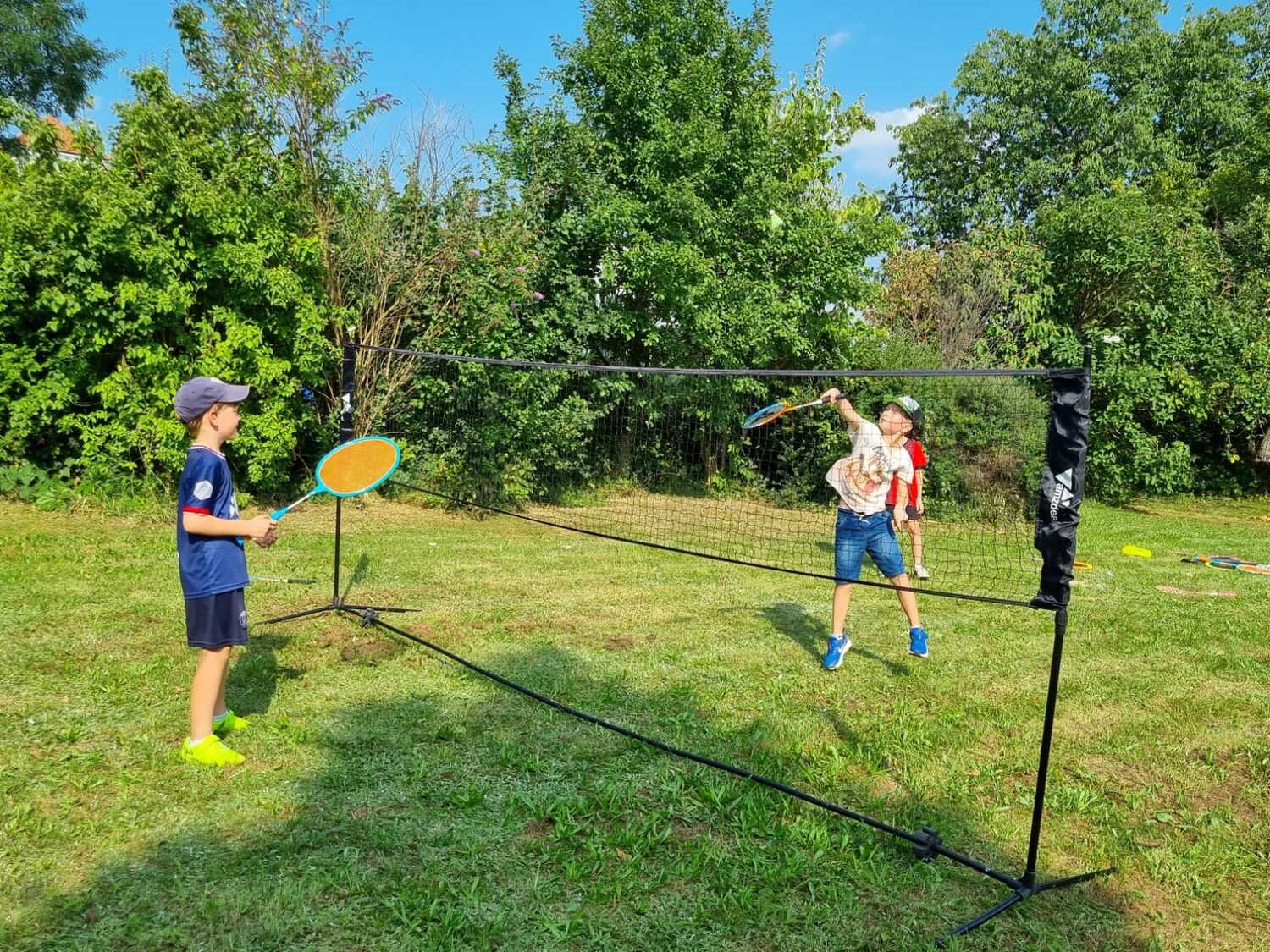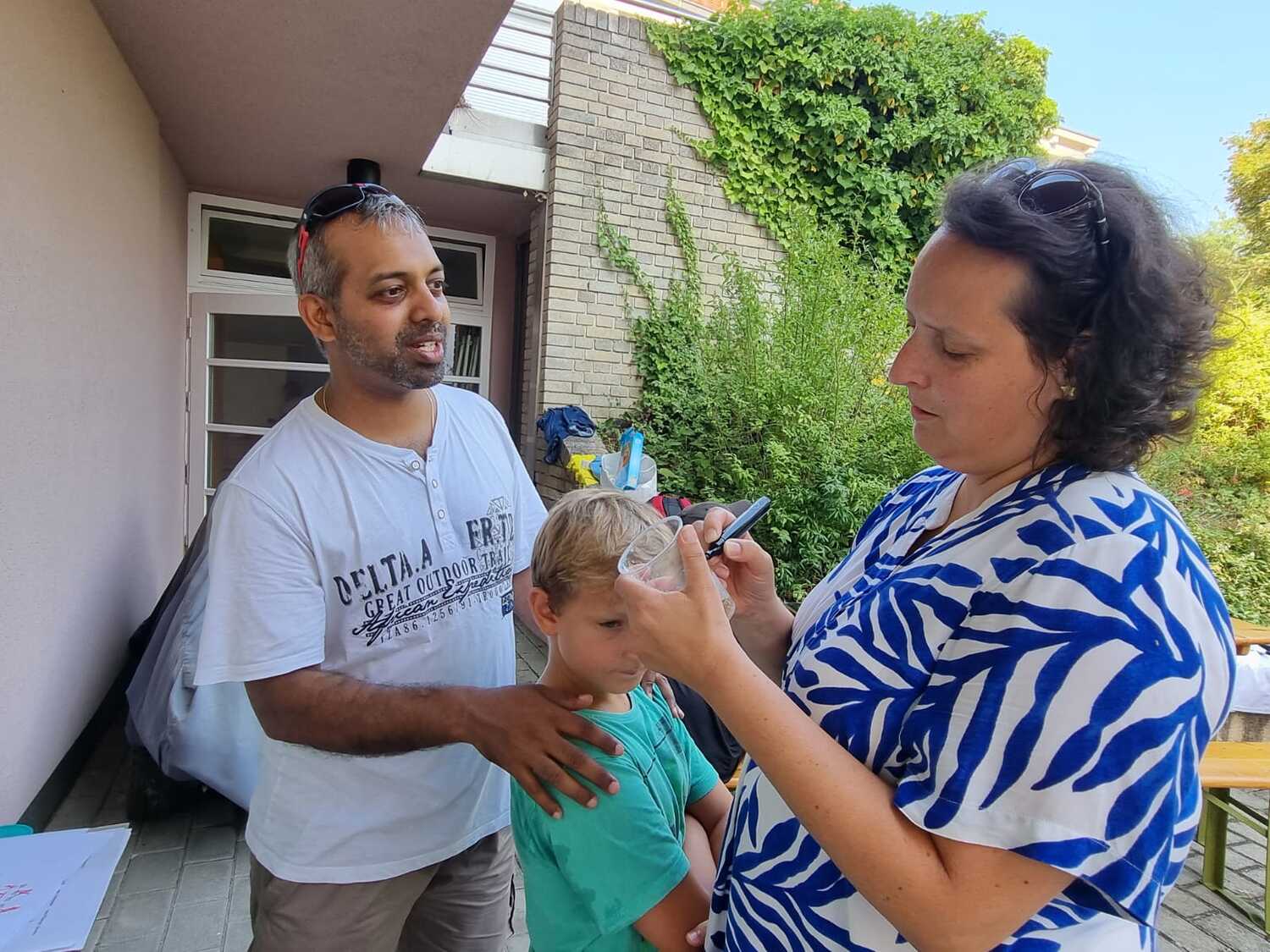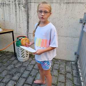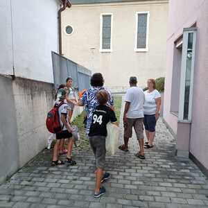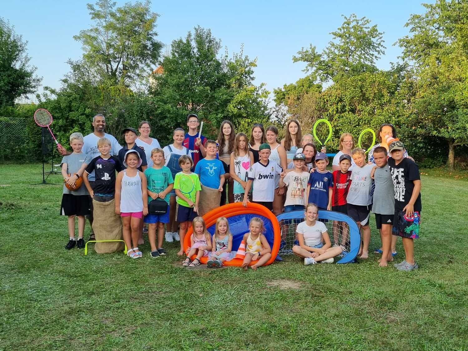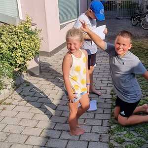 Um 15 Uhr versammelten sich alle im Pfarrhof Lackenbach. Nach einer Begrüßungsrunde spielten wir im schattigen Garten. Wir hatten für die Kinder verschiedene Spiele aufgebaut z.B: Sackhüpfen, Dosen werfen, Fußball, Boccia, Federball, Ball über die Schnur, Uno…. . Doch besonders Spaß machte unsere Wasserbombenschlacht, wo niemand trocken blieb –sogar Herrn Pfarrer Shinto haben wir erwischt. J