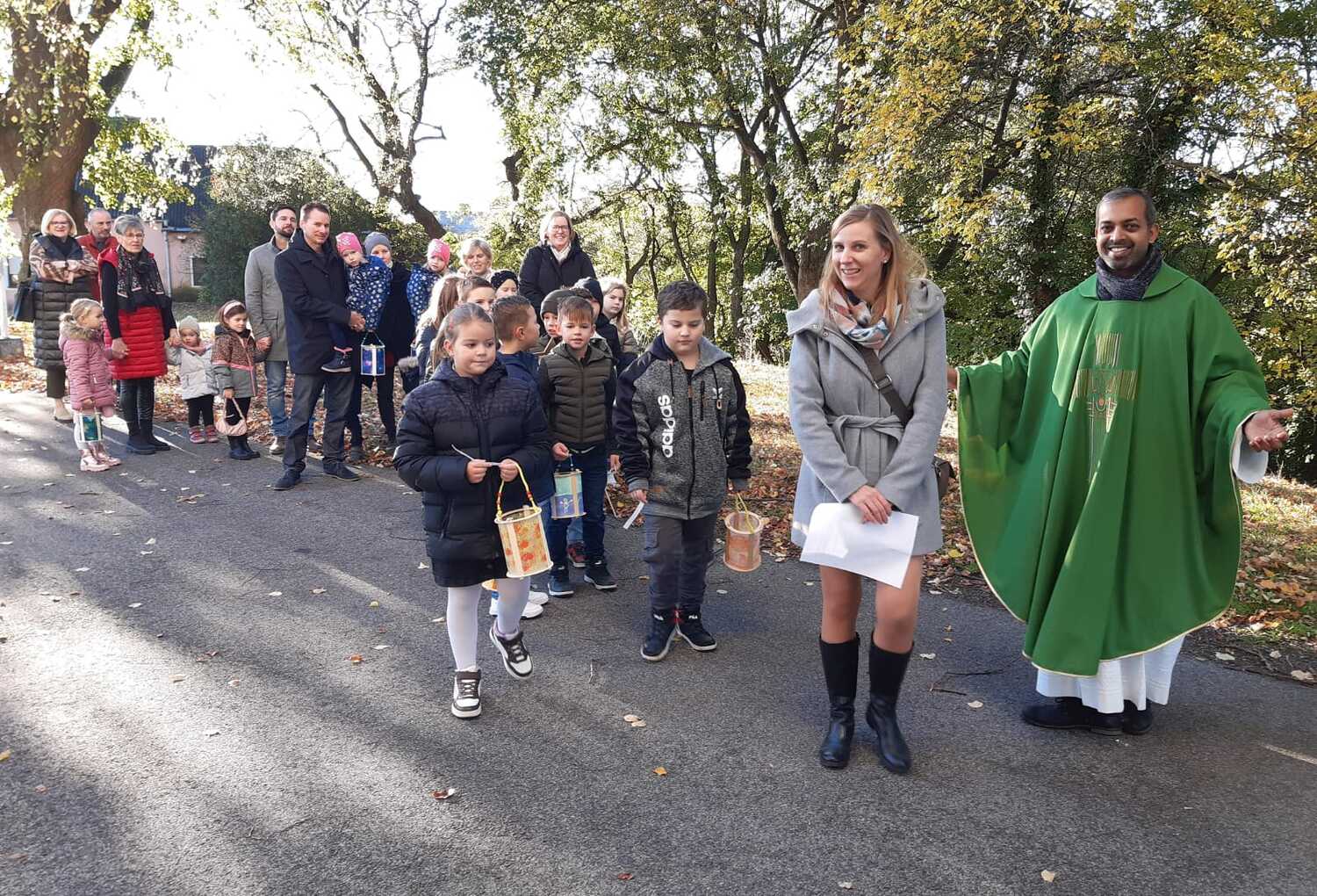 Die Kinder und die Firmlinge, die im Gottesdienst dem Volk vorgestellt wurden, zogen mit ihren Laternen mit Hr. Pfarrer Shinto in die Kirche ein.
