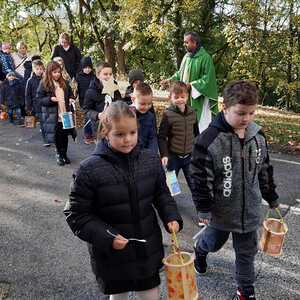 Nach der Predigt präsentierten die Kinder ein Martinsspiel der etwas anderen Art. Der Hl. Martin soll eine wichtige Botschaft in die nächste Stadt bringen und die Menschen wollen ihm dabei helfen und teilen mit ihm verschiedene Dinge für seine Reise. Aber auch Zuversicht und Mut haben ihm die Menschen mitgegeben.