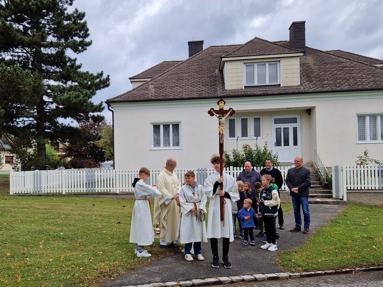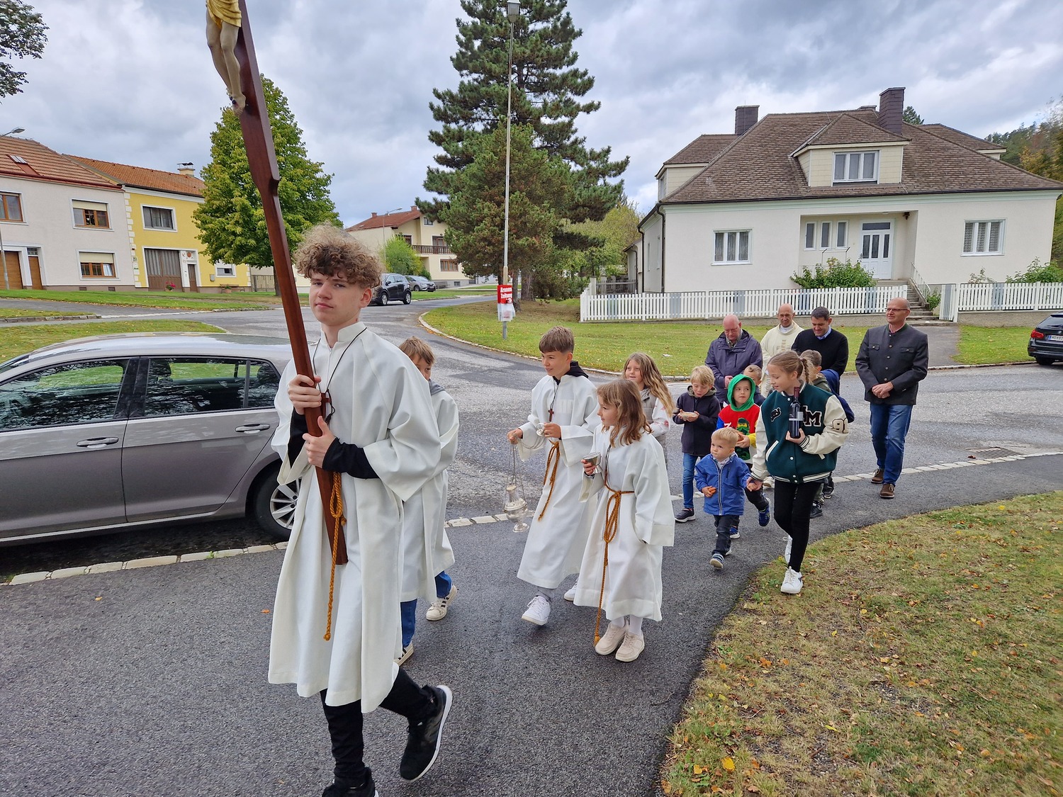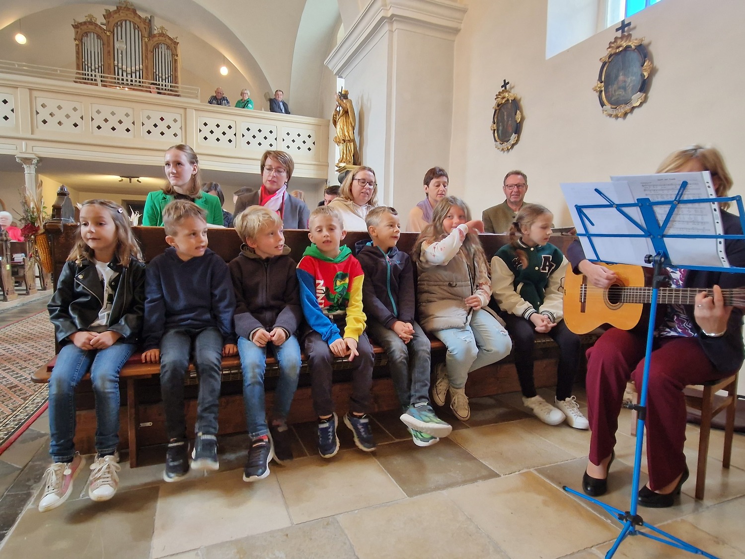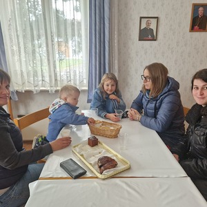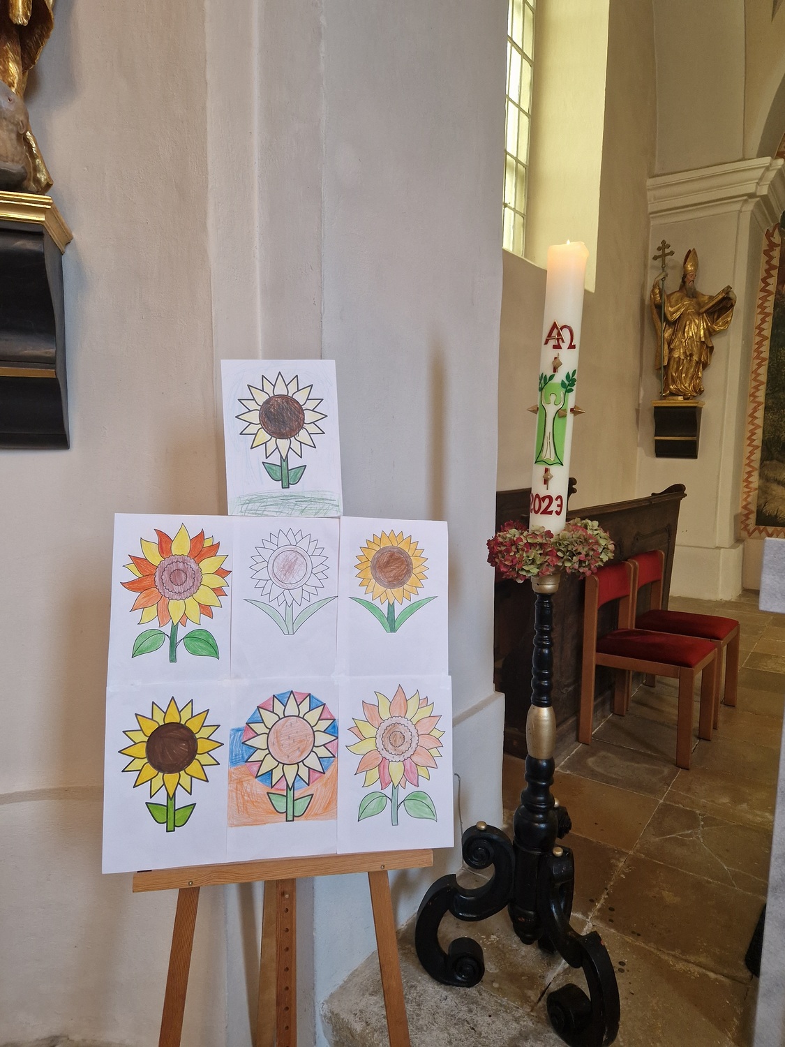 Aus Dankbarkeit feierten wir wieder das Erntedankfest. Pfarrer Gregor erzählte von den Sonnenblumen. Die Kinder und Sänger/innen gestalteten die Eucharistiefeier mit. Anschließend fand die Agape diesmal bei kühlem Wetter im Pfarrhof statt.
