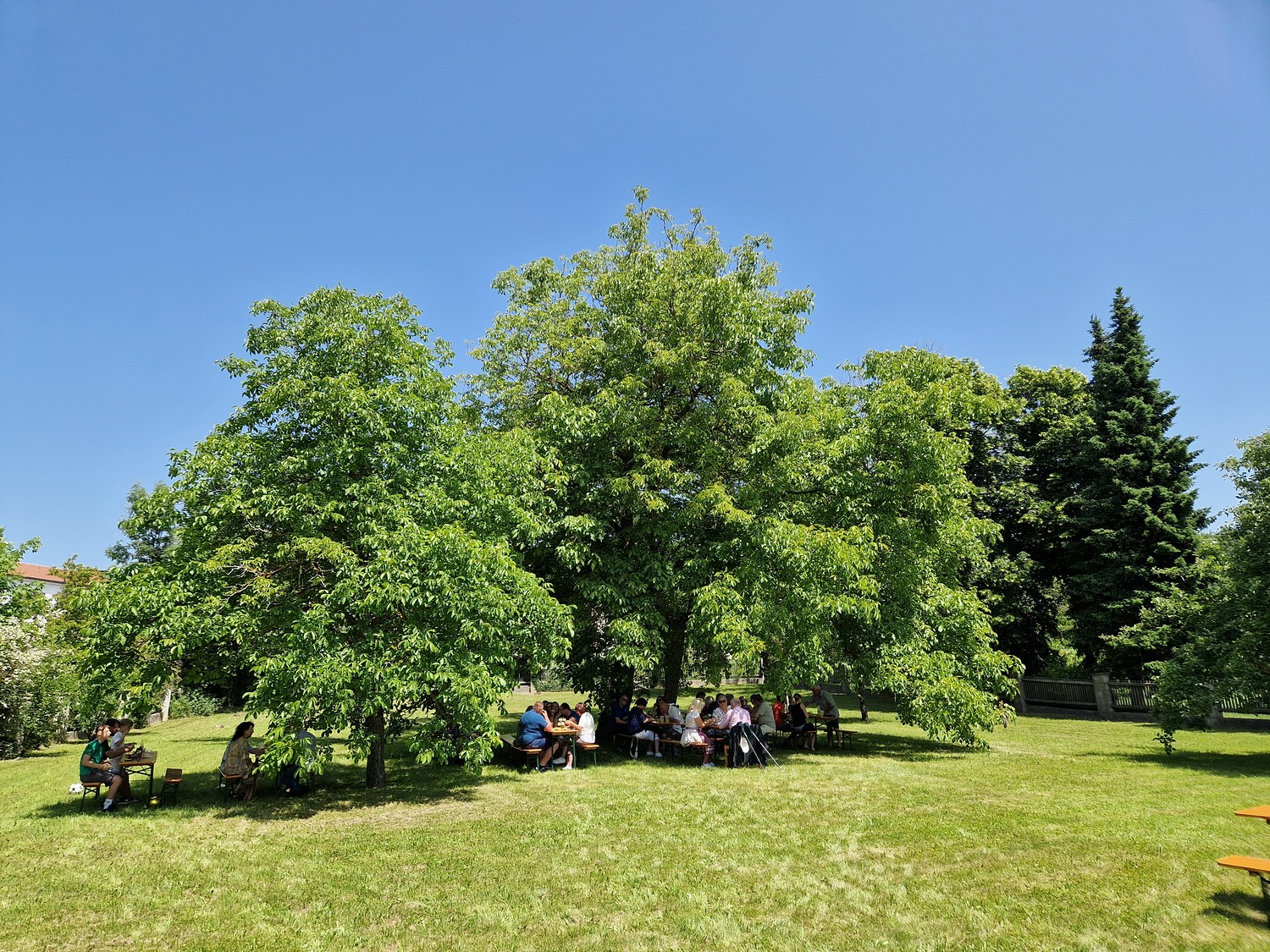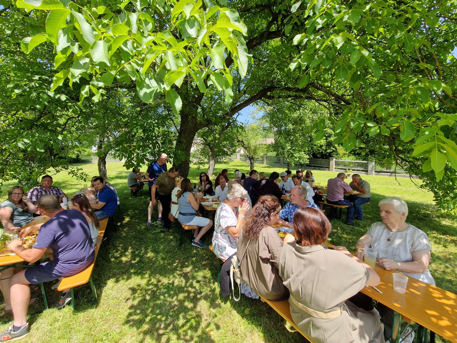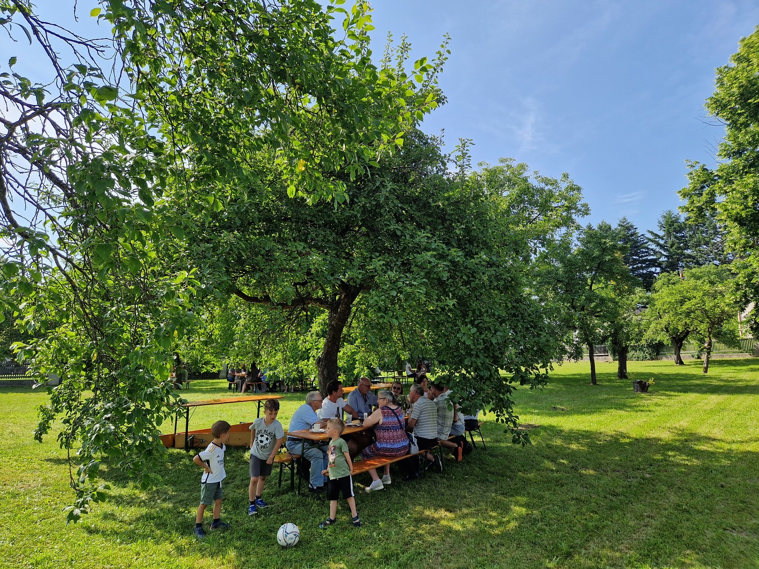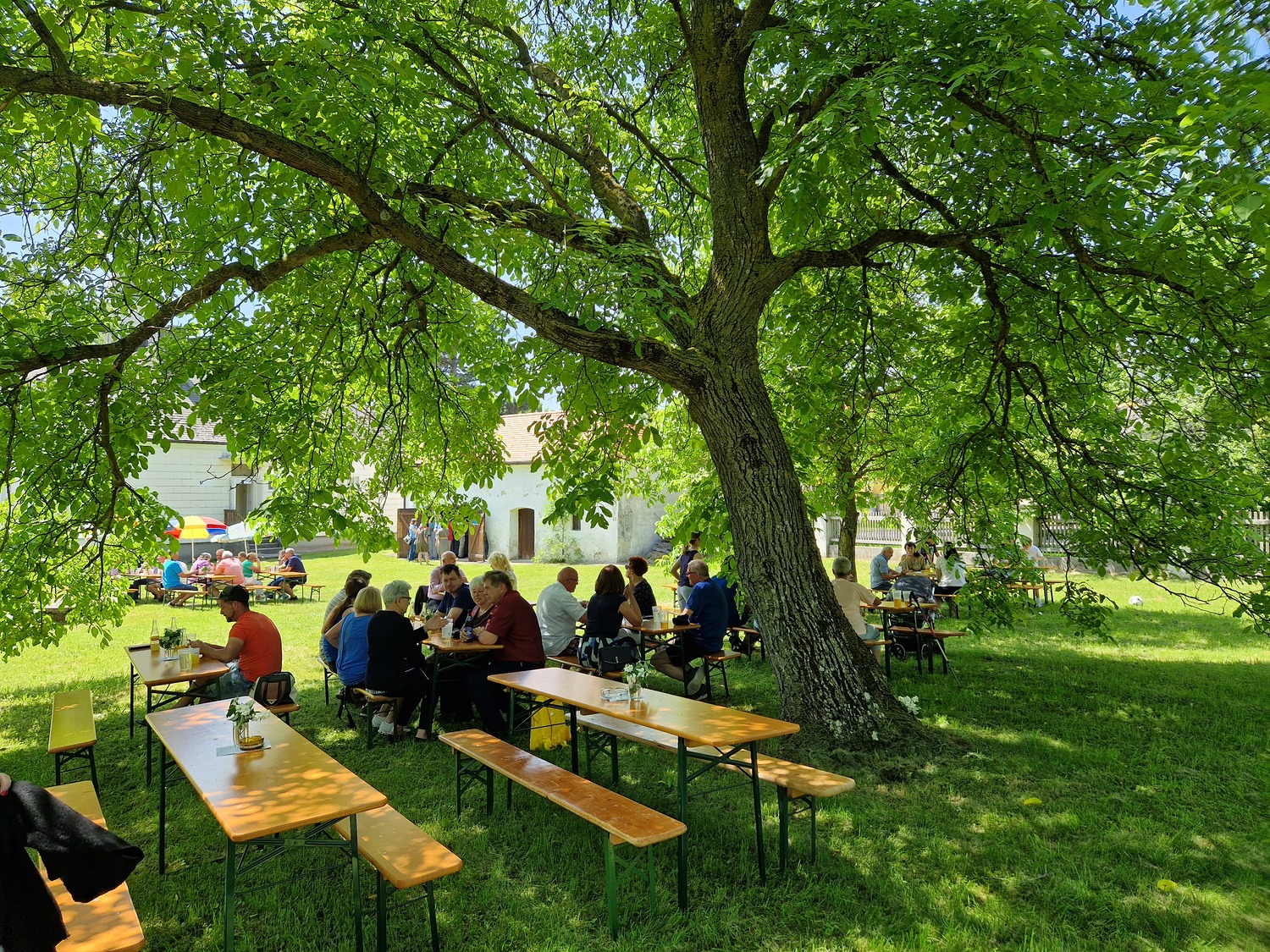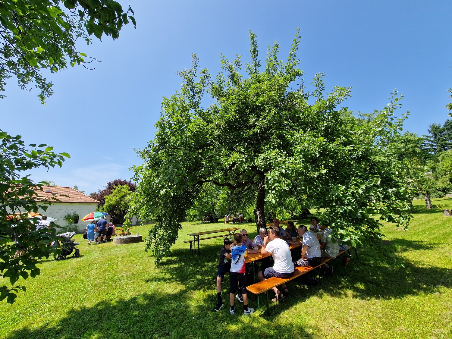 Der Pfarrgemeinderat lud zum Pfarrkaffee XXL in den Pfarrhofgarten ein: Bereits nach der Hl. Messe konnten kühle Getränke beim Frühschoppen genossen werden. Gustl´s Grillservice versorgte die Besucher mit Grillhendl. Zum Kaffee standen 10 verschiedene Mehlspeisen zur Auswahl. Die Bäume im Pfarrhofgarten spendeten angenehme Schattenplätze, wo sich´s angenehm plaudern lies.