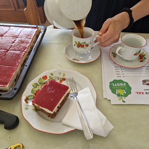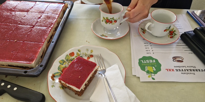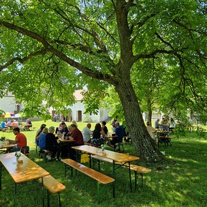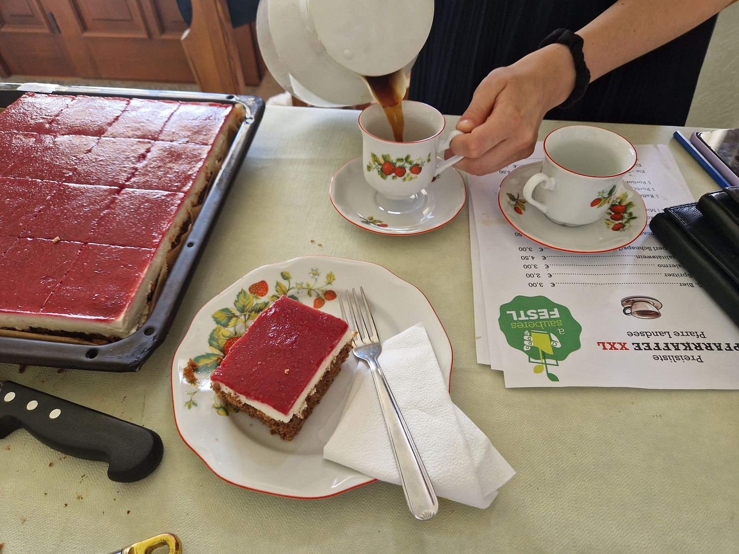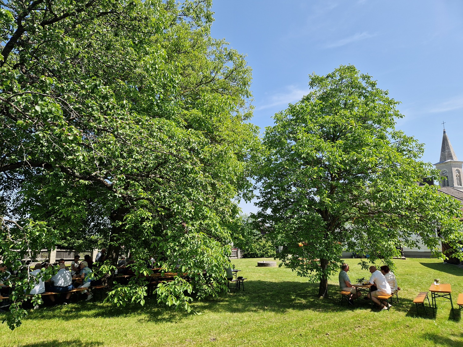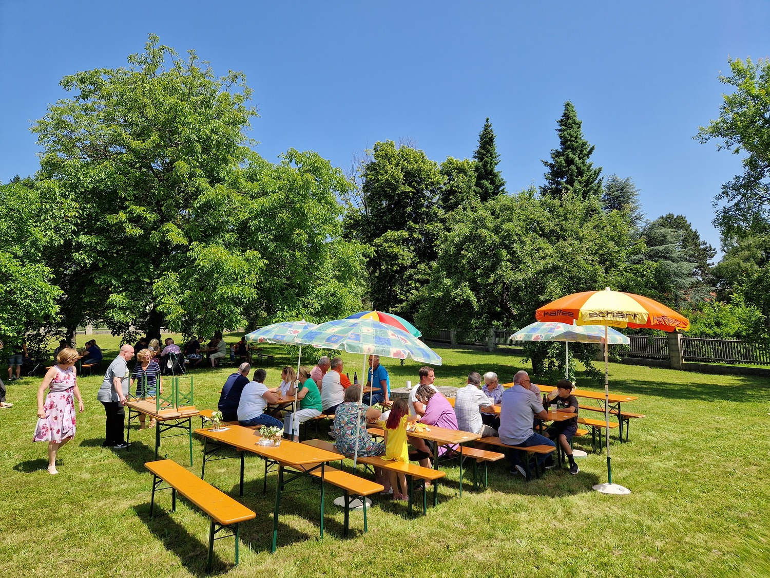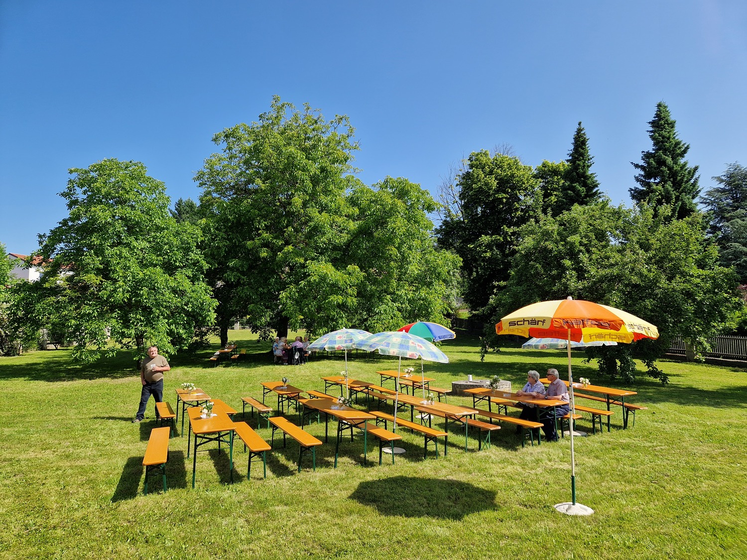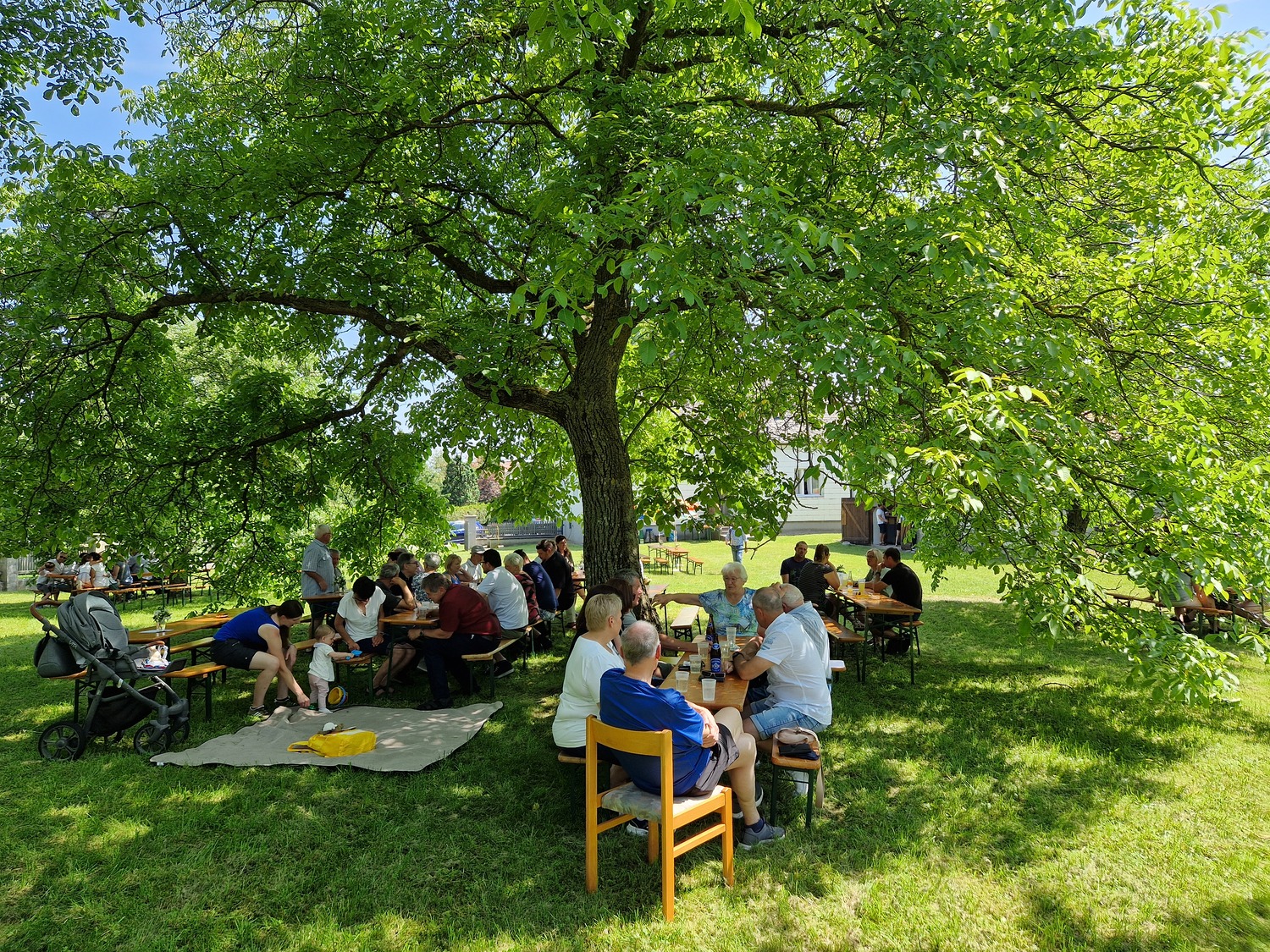 Der Pfarrgemeinderat lud zum Pfarrkaffee XXL in den Pfarrhofgarten ein: Bereits nach der Hl. Messe konnten kühle Getränke beim Frühschoppen genossen werden. Gustl´s Grillservice versorgte die Besucher mit Grillhendl. Zum Kaffee standen 10 verschiedene Mehlspeisen zur Auswahl. Die Bäume im Pfarrhofgarten spendeten angenehme Schattenplätze, wo sich´s angenehm plaudern lies.