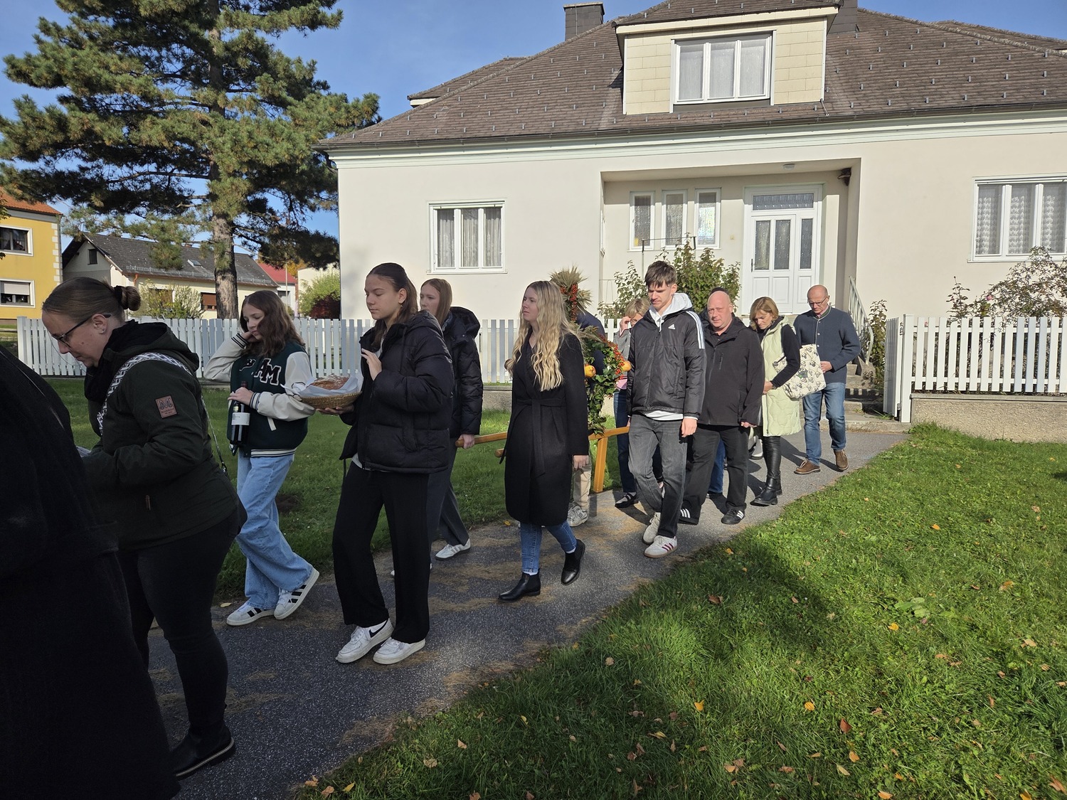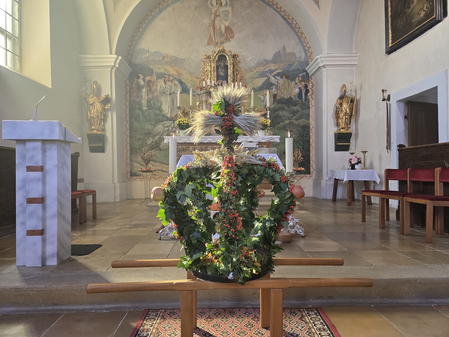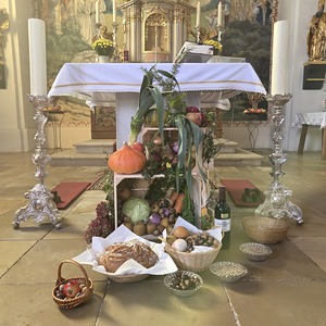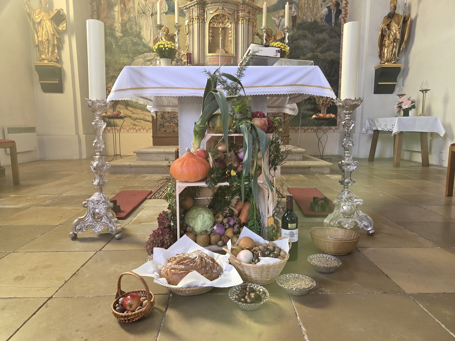 Beim Einzug in die Kirche brachten die Kinder und Jugendlichen alle Gaben zum Altar. Die Erntekrone wurde von Pfarrer Basil gesegnet. Die musikalische Gestaltung übernahm unser Chor. Anschließend gab es bei der Agape ein schönes Beisammensein und es konnten Produkte anlässlich des Weltmissionssonntages gekauft werden.