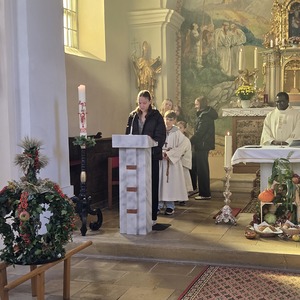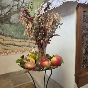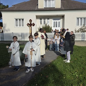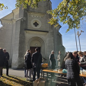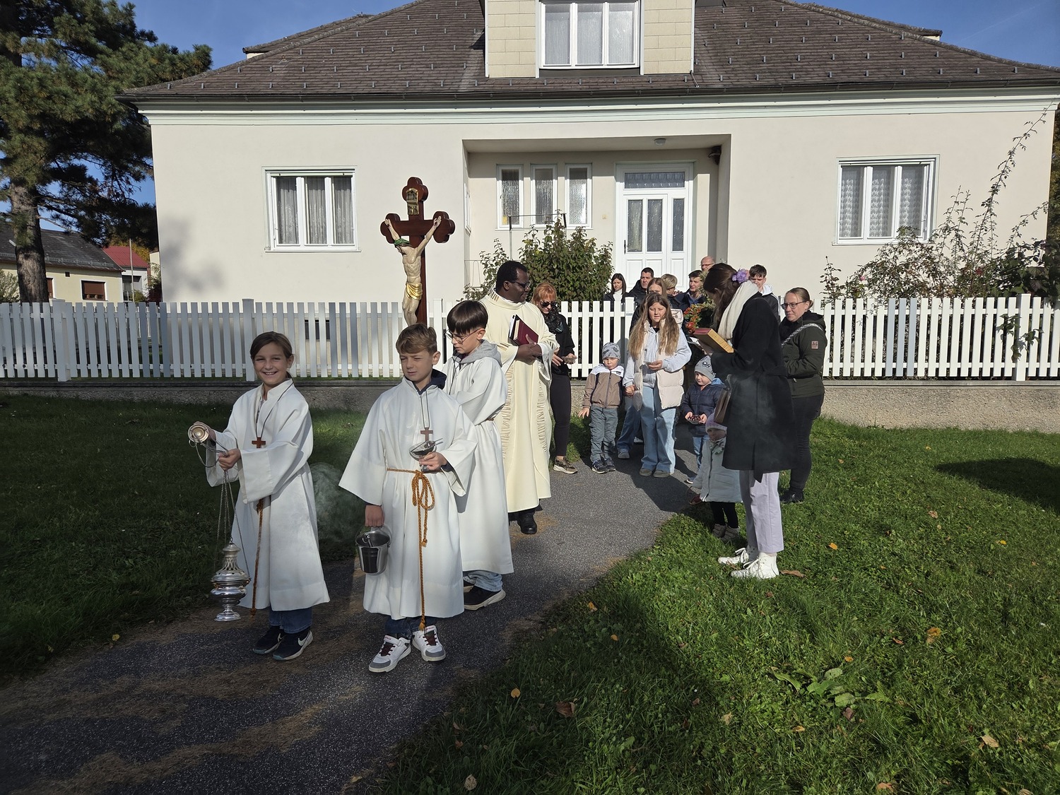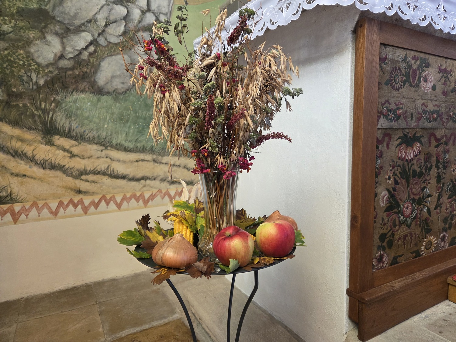 Beim Einzug in die Kirche brachten die Kinder und Jugendlichen alle Gaben zum Altar. Die Erntekrone wurde von Pfarrer Basil gesegnet. Die musikalische Gestaltung übernahm unser Chor. Anschließend gab es bei der Agape ein schönes Beisammensein und es konnten Produkte anlässlich des Weltmissionssonntages gekauft werden.