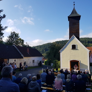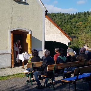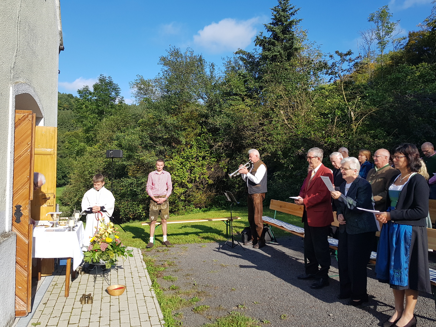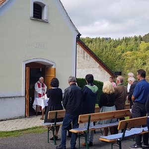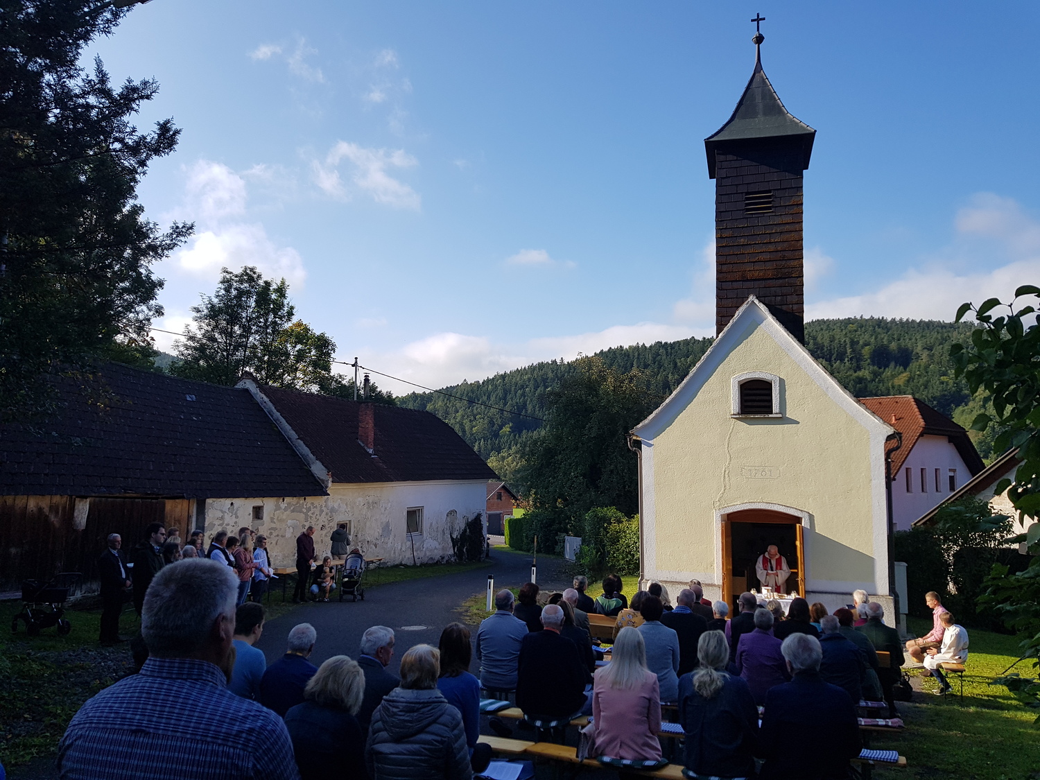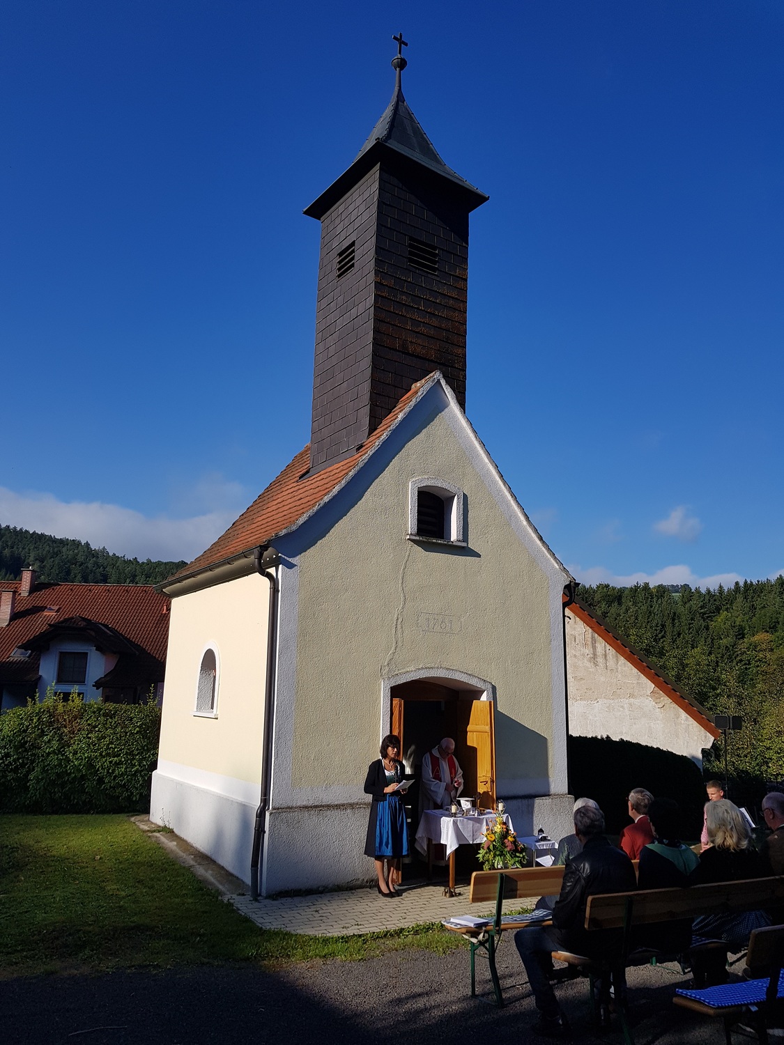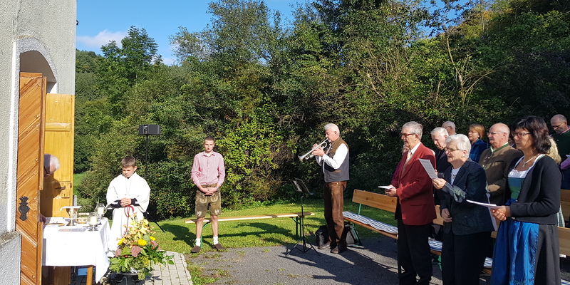 Die Eucharistiefeier wurde zu Ehren des Hl. Matthäus bei der Filialkirche in der Blumau gefeiert. Diese gibt es seit 260 Jahren, über der Tür steht die Jahreszahl 1761 geschrieben. Musikalisch umrahmt wurde die Feier mit Trompetenklängen. Zahlreiche Mitfeiernde durften sich anschließend über eine Agape freuen.