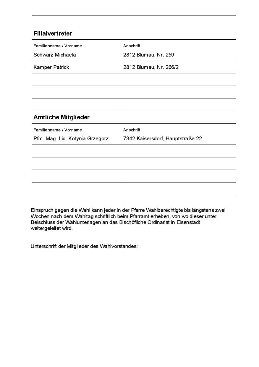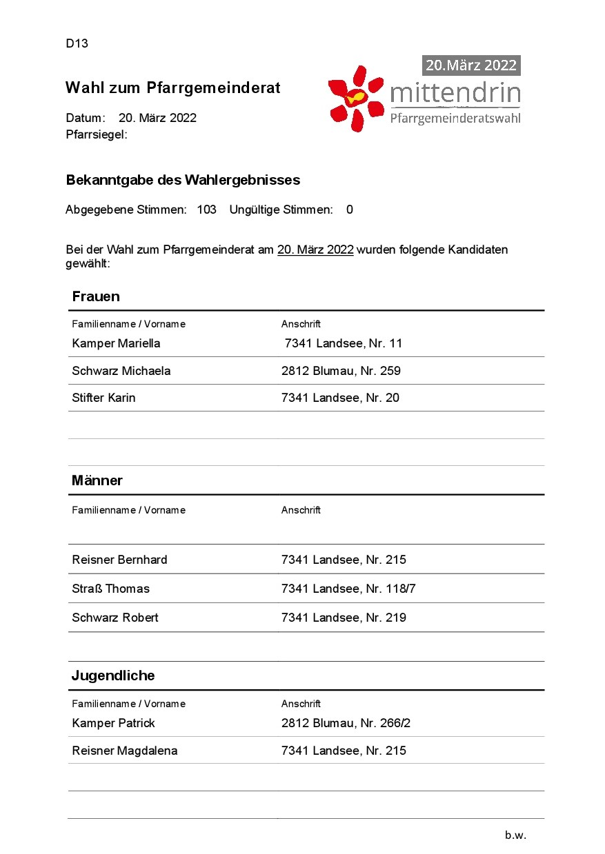 Wahlergebnis - Pfarrgemeinderatswahl