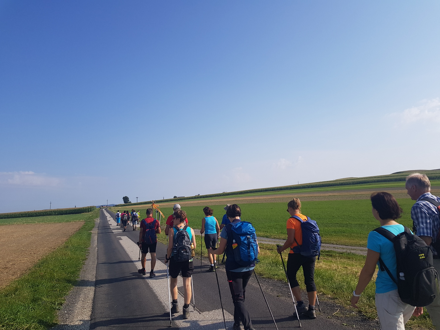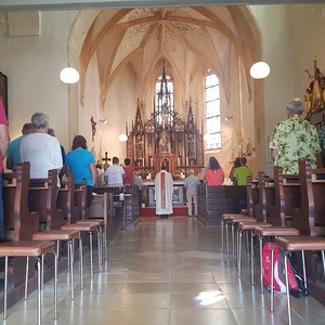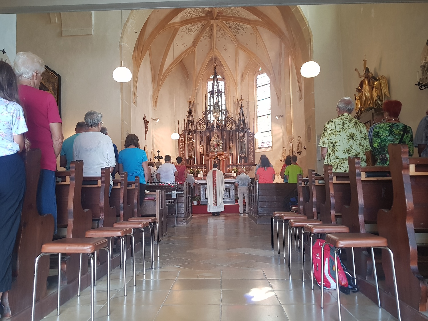 Das Ziel der diesjährigen Fußwallfahrt war die Annakirche in Wiesmath. Die Strecke führte über die Neumühle und Beistein zum Annaberg. Der gemeinsame Weg wurde mit Liedern und Gebeten gestaltet. Bei der Kirche angekommen wurde schließlich die Hl. Messe gefeiert.