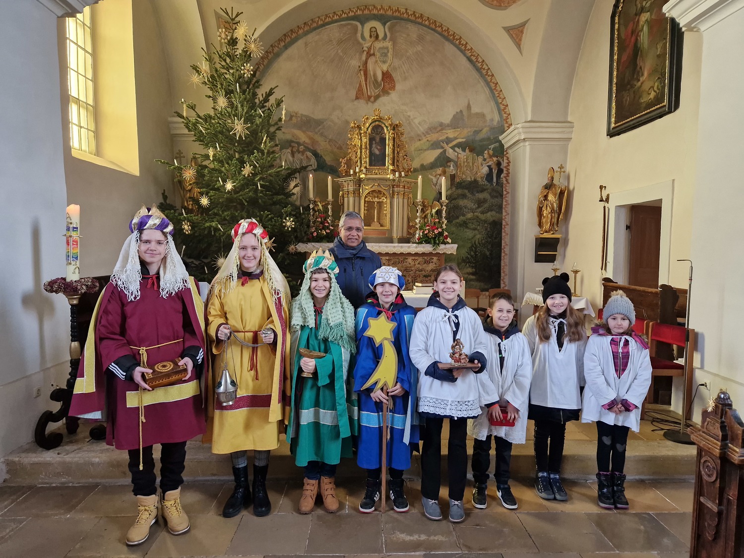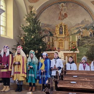 Die Ministranten setzten auch heuer wieder ein Zeichen - für eine gerechte Welt. Bei angenehmen Temperaturen besuchten sie die Häuser in Landsee und Blumau um Spenden für die Dreikönigsaktion zu sammeln.