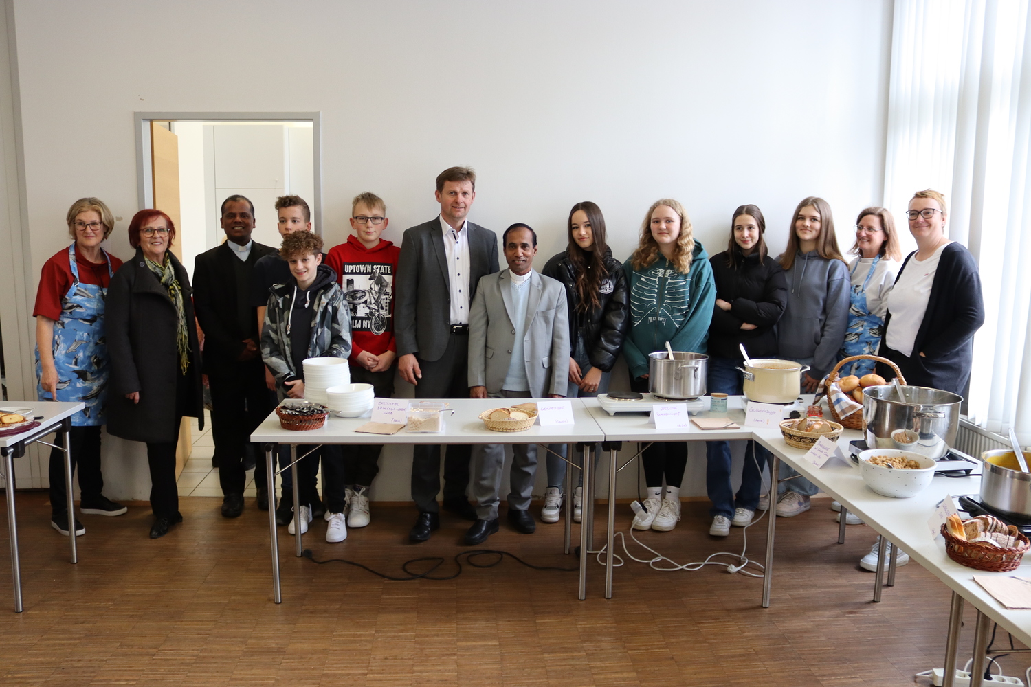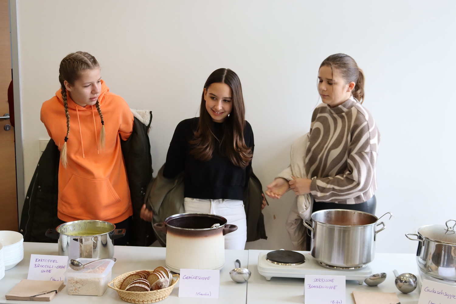 Im Anschluss an den Gottesdienst luden Caritas-Kreis, Firmlinge und Pfarrgemeinderat zum Fastensuppenessen ins Pfarrzentrum. Man konnte neun selbstgemachte Suppen verkosten: verschiedene Gemüsecremesuppen, deftige Gulasch- oder Bohnensuppen, bis hin zu einer indischen Suppe, die von P. Deiva und P. Rayappan zubereitet wurde. Es war ein gelungener Fastensonntag, bei dem gemeinsam mit allen Sinnen erlebt werden konnte, dass Teilen Zukunft spendet und Fasten auf diese Art und Weise sinn- und gemeinschaftsstiftend ist.