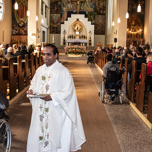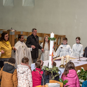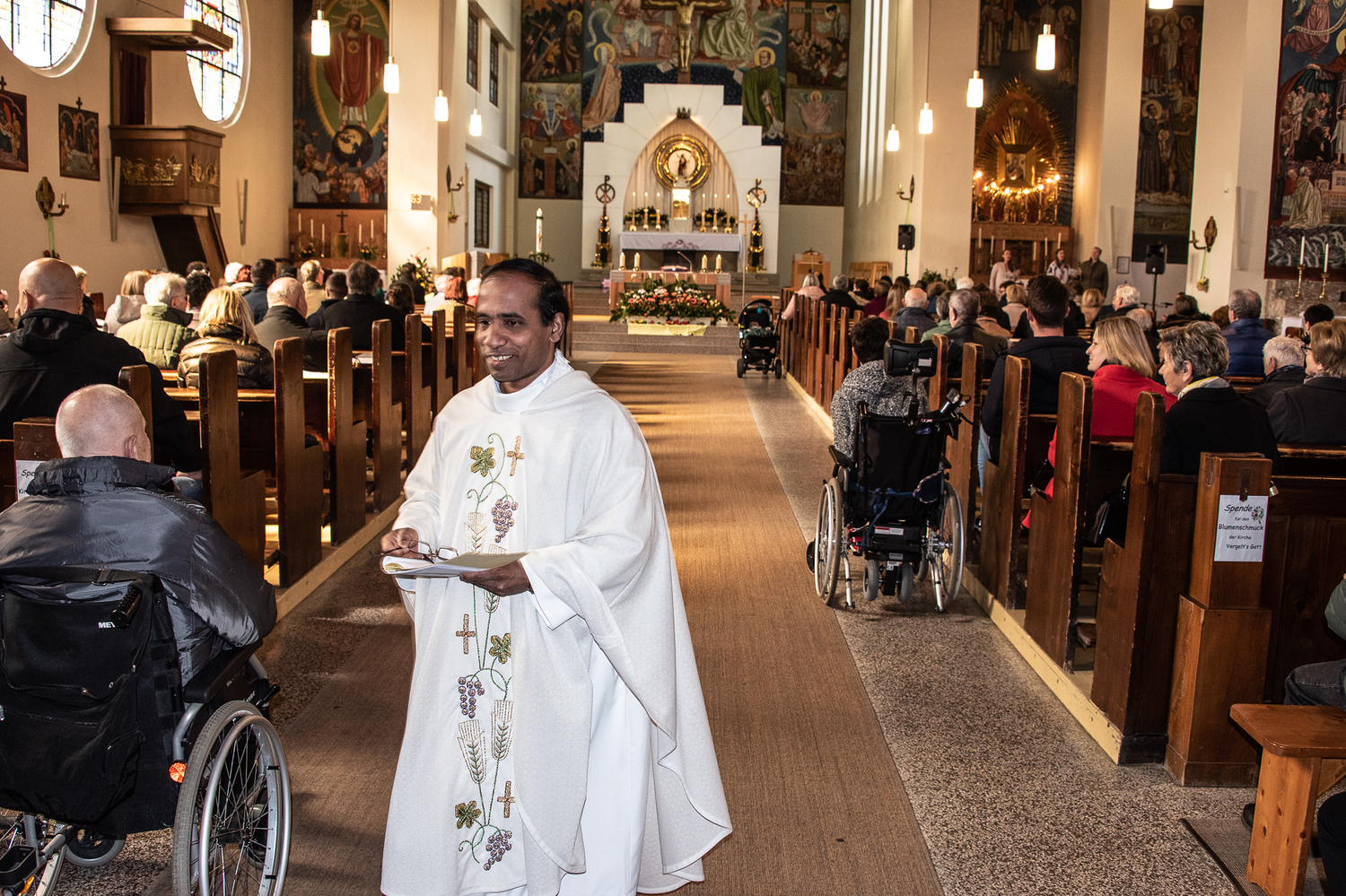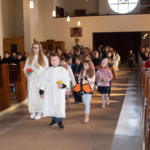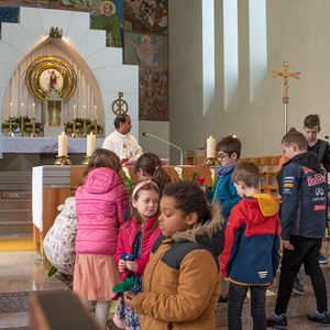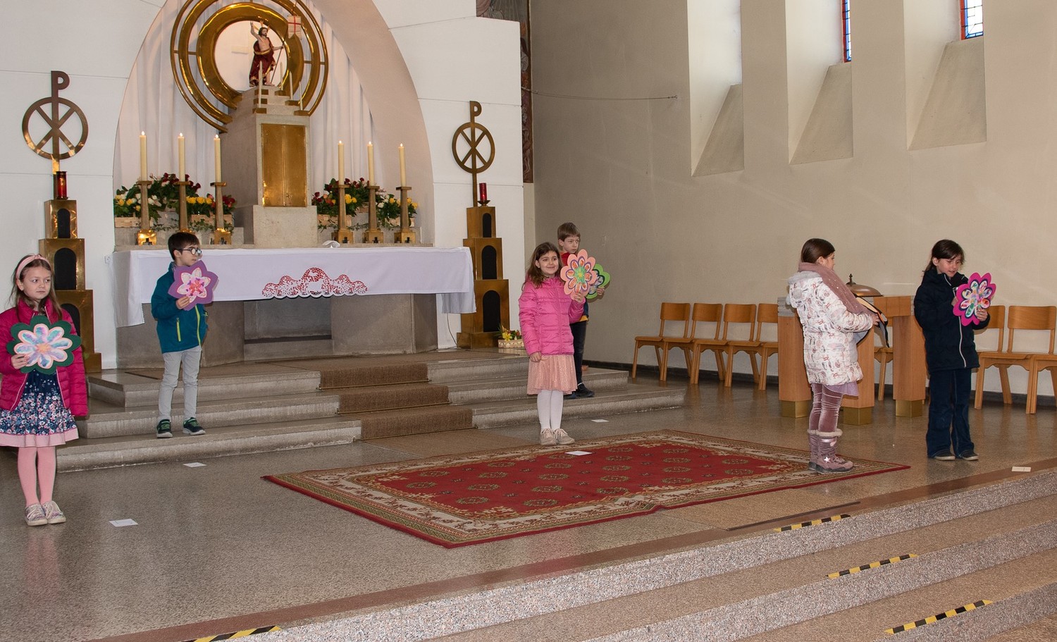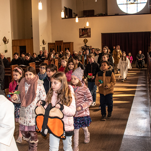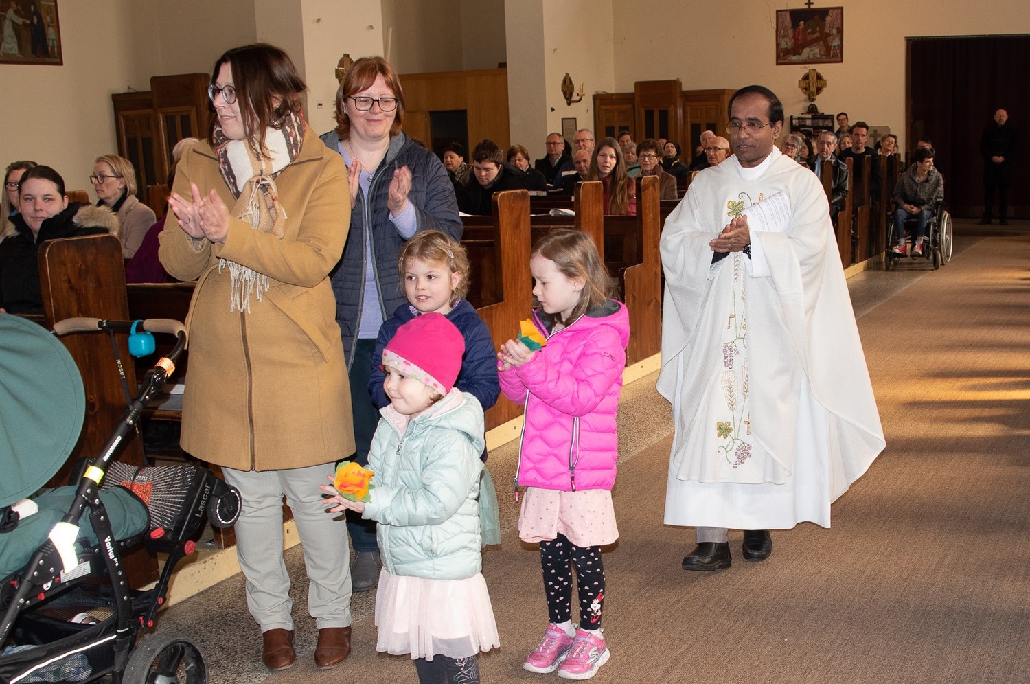 In der Familienmesse am Ostermontag steckten die Kinder alle Gottesdienstbesucher mit ihrer Freude an. Dazu trugen auch die Lesungen von der Verwandlung der Emmaus-Jünger, die Geschichte von Raupe und Schmetterling und besonders die Prozession durch die Kirche bei. Die Lieder wurden von der Musikgruppe Arabesque wieder so fröhlich und wunderschön gesungen.