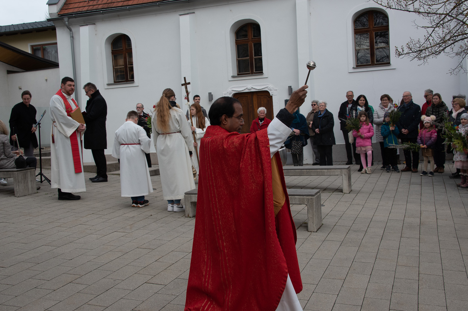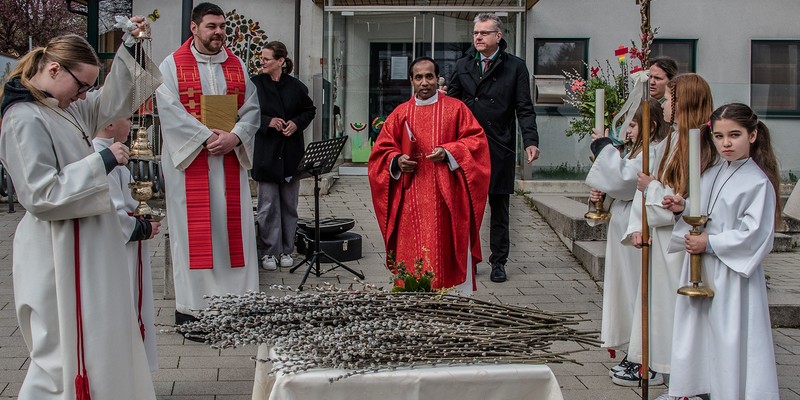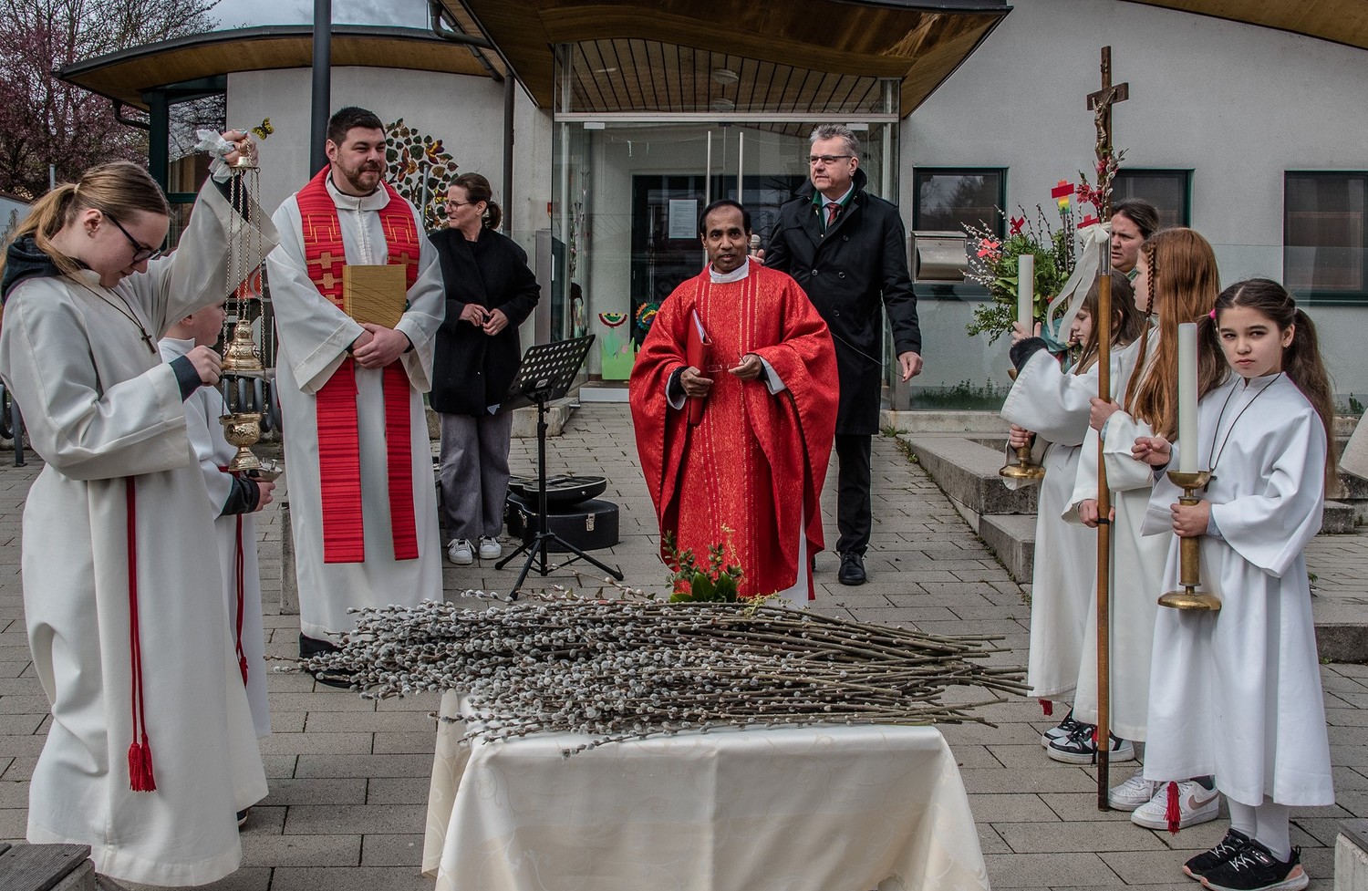 Einen sehr feierlichen Palmsonntag erlebten viele Gläubige im Gedenken an den Einzug Jesu in Jerusalem. Vor der Franziskuskirche segnete Pater Deiva die Palmzweige und lud anschließend zur Prozession zur Pfarrkirche ein. Die Lesungen und Passion erinnerten an das Leiden Christi. Im Schlusslied, das die Erstkommunionkinder mit Gesten gestalteten, erklang der Wunsch aller: „Shalom – der Friede des Herrn sei mit dir!“