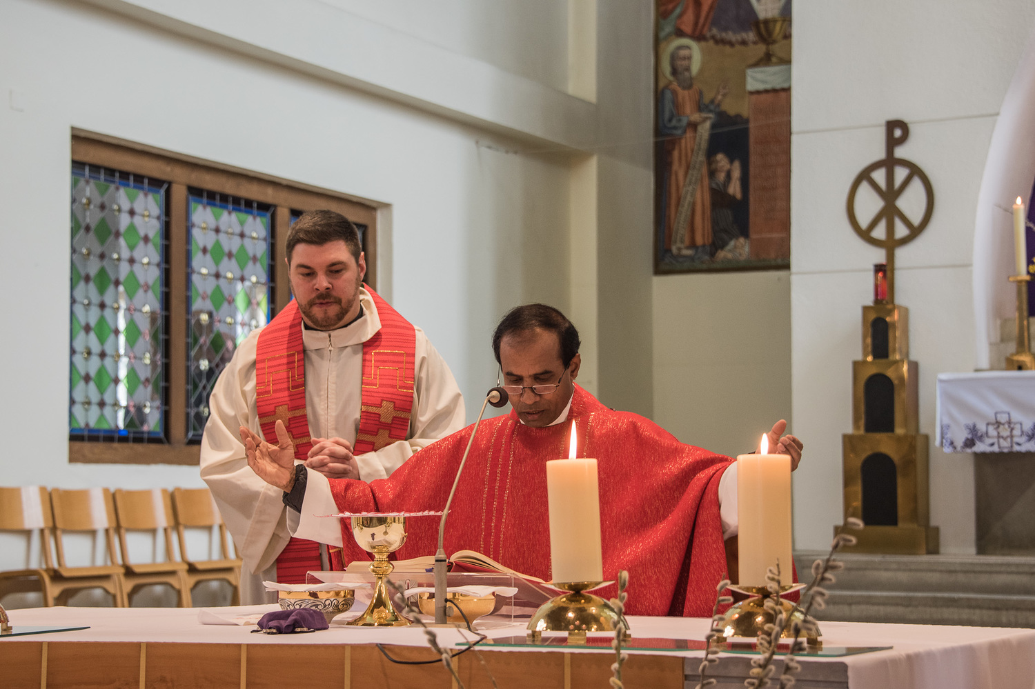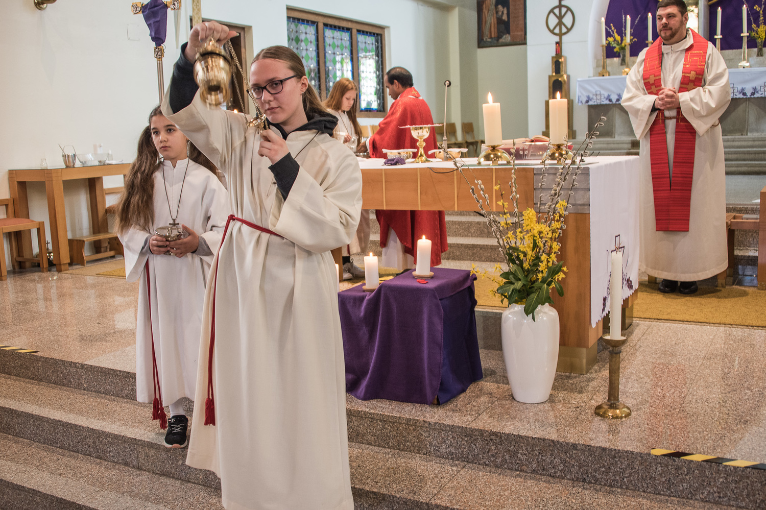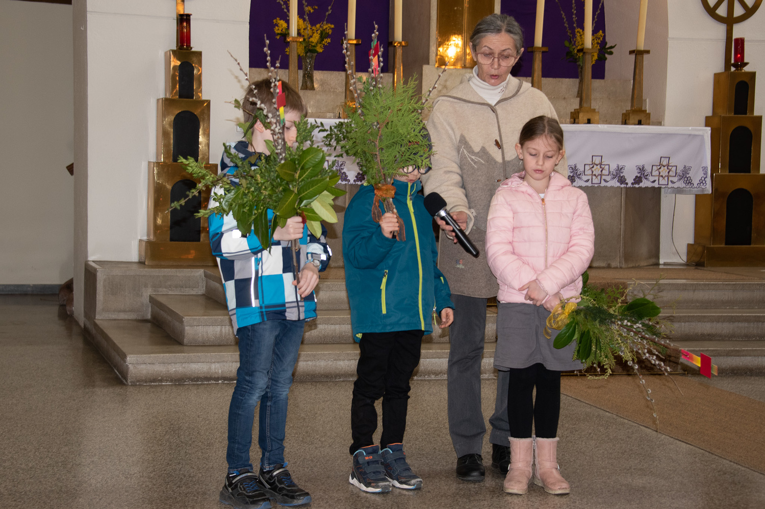 Einen sehr feierlichen Palmsonntag erlebten viele Gläubige im Gedenken an den Einzug Jesu in Jerusalem. Vor der Franziskuskirche segnete Pater Deiva die Palmzweige und lud anschließend zur Prozession zur Pfarrkirche ein. Die Lesungen und Passion erinnerten an das Leiden Christi. Im Schlusslied, das die Erstkommunionkinder mit Gesten gestalteten, erklang der Wunsch aller: „Shalom – der Friede des Herrn sei mit dir!“