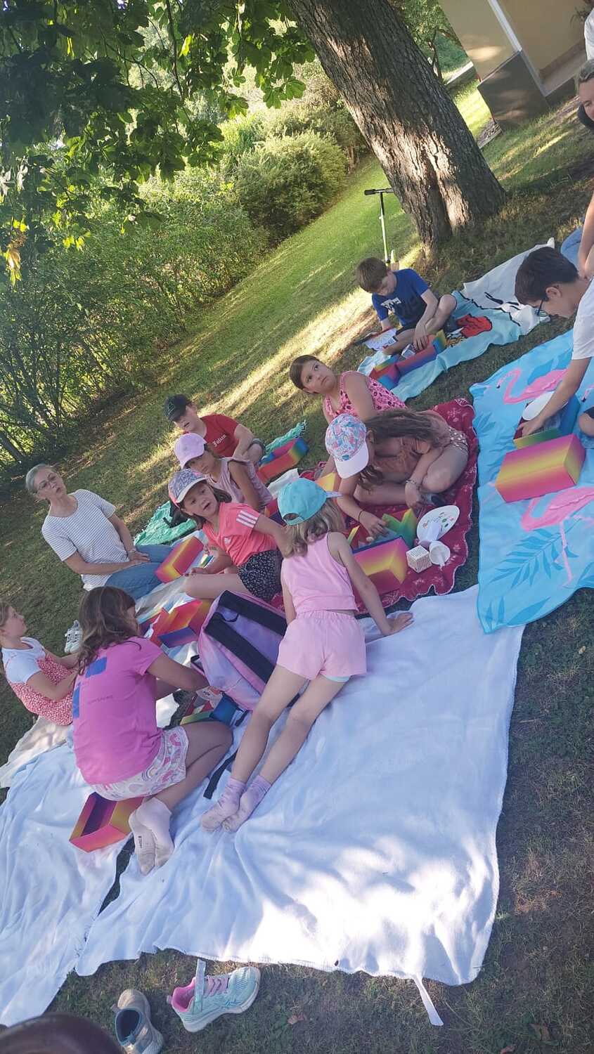 Vor der Kapelle wurden die Decken aufgebreitet und mit den gesammelten Schätzen aus der Schatzkiste Rückschau gehalten.