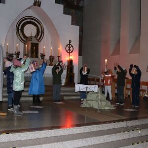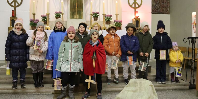 Die Martinsandacht nach dem Laternenzug vom Hauptplatz zur Kirche wurde von den Kindern der Volksschule unter der Leitung der Religionslehrerin Nicole Zagler gestaltet. Mit dem Lied "Ich gehe mit meiner Laterne" zogen die Kinder mit ihren Laternen in die dunkle Kirche ein. Die KInder der dritten Klassen spielten die bis heute beeindruckende Geschichte des Mantelteilens und beim Lichtertanz mit den Laternen brachten die Kinder Licht in die dunkle Kirche und in die Herzen der Mitfeiernden. Zum Abschluss segnete Pater Rayappan alle Kinder und ihre Familien, damit es allen gelinge, immer mehr nach dem Vorbild des Heiligen Martin zu handeln.