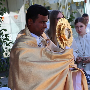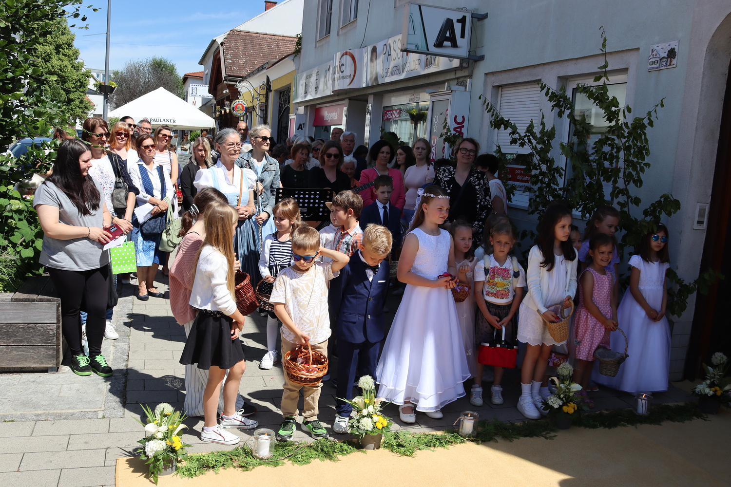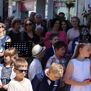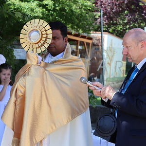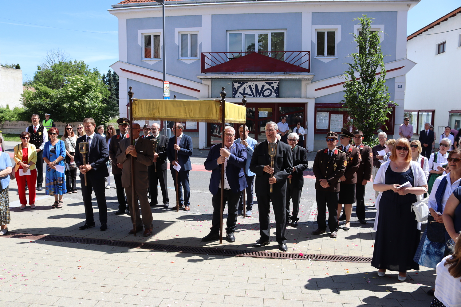 Nach der Messe begann die Prozession mit der konsekrierten Hostie durch Oberpullendorf. Ein Zeichen der Zuwendung Gottes zu Oberpullendorf, unserem Wohn-, Arbeits- und Lebensraum, zur Erde, zur Schöpfung und zur ganzen Wirklichkeit des Lebens. Diese Präsenz Gottes wurde in den Fürbitt- und Segensgebeten besonders zum Ausdruck gebracht.