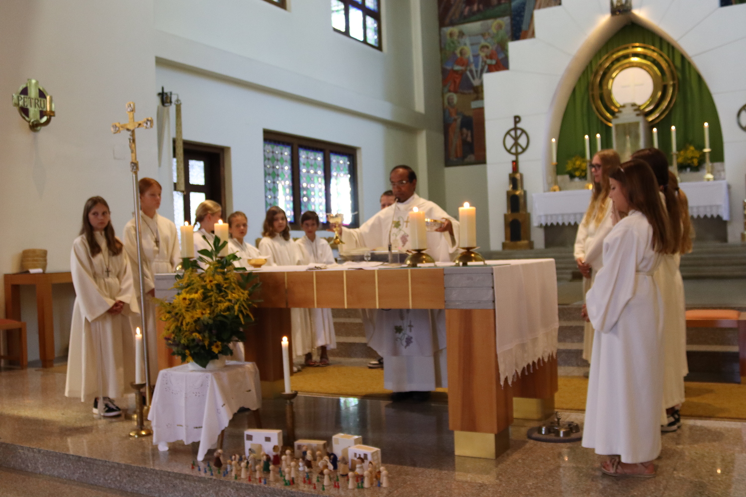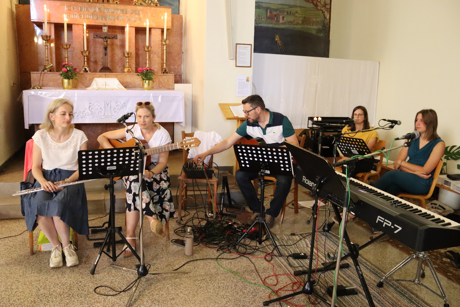 Am letzten heißen und sonnigen Sommersonntag feierte die Pfarrfamilie ihr Pfarrfest mit allem was dazu gehört: Begonnen wurde mit einer stimmigen Familienmesse mit schwungvoller Musik und vielen Kindern, die mitgestaltet haben, zu Mittag gab es reichlich Essen für die unterschiedlichen Geschmäcker und am Nachmittag Süßes beim Mehlspeisstandl oder kühles Spritziges beim Weinstand.