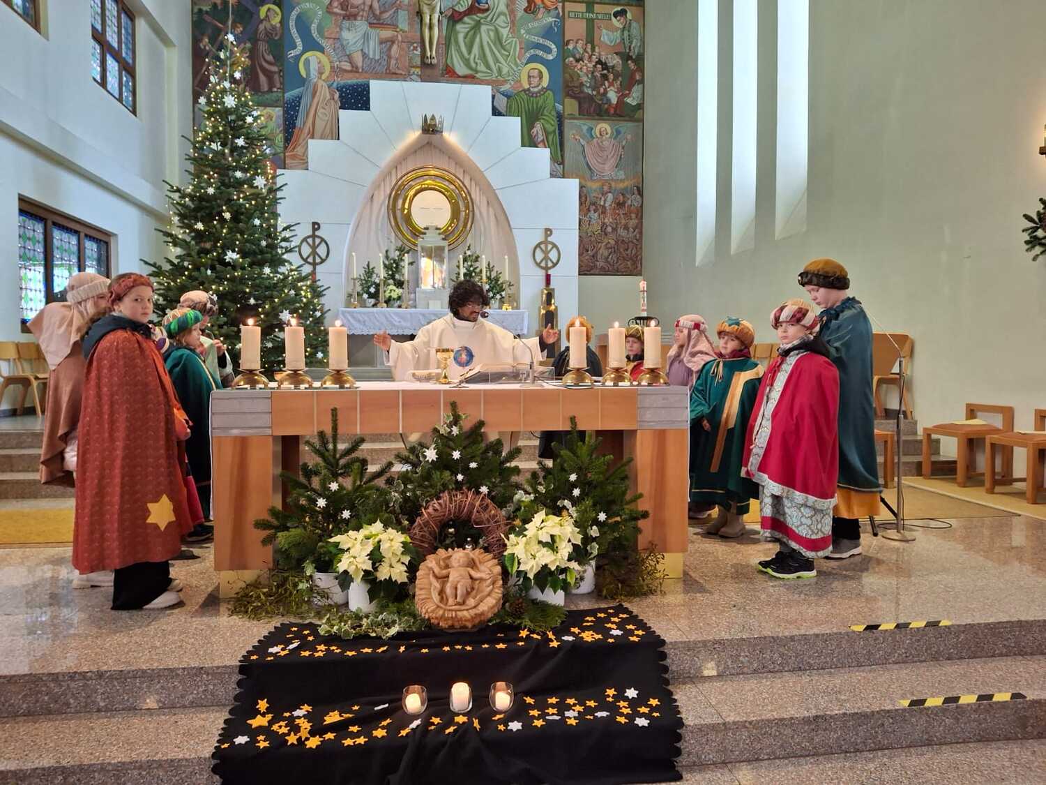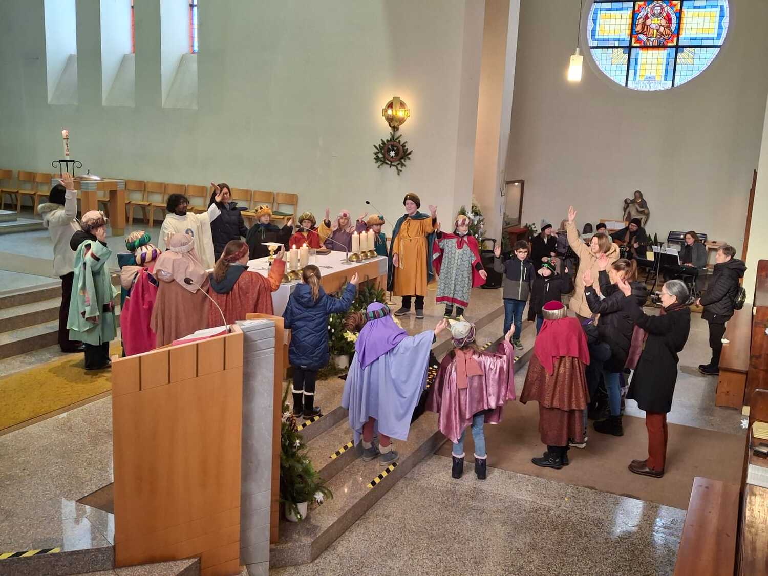 Am Fest der Heiligen drei Könige haben die Sternsinger die Familienmesse in der Pfarrkirche mit ihren Gebeten, Texten und Liedern mitgestaltet. Zum Abschluss der Aktion freuen sich alle Beteiligten auf einen Kinobesuch und das gemeinsam Pizzaessen.
