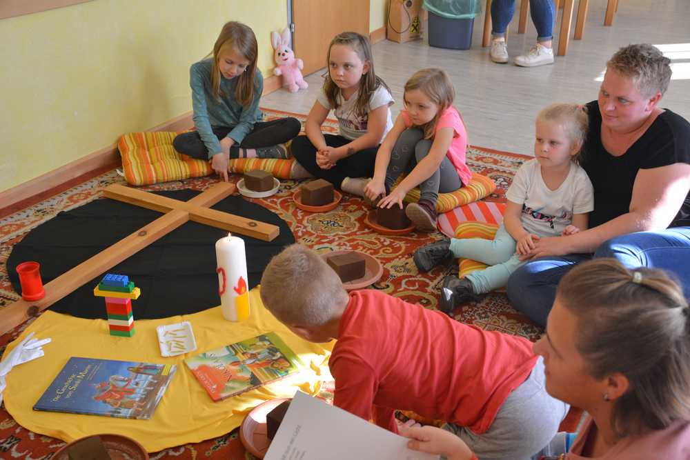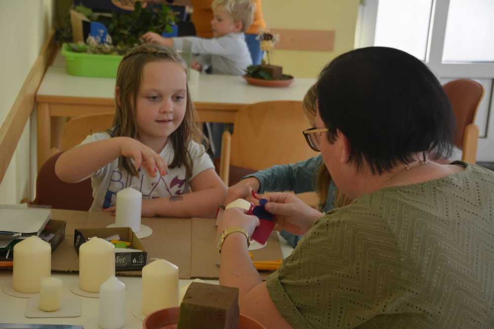 Am Donnerstag, 27. Oktober fand das zweite Treffen der Jahresfestkreisgruppe statt. Dieses Mal durften wir im Pfarrheim Grafenschachen zu Gast sein. Das Thema Allerheiligen konnten die Kinder bei verschiedenen Stationen erleben. So vergruben sie je eine Tulpenzwiebel in die Erde , die scheinbar stirbt. Die Kinder bastelten aber auch Gestecke aus totem Material und erweckten es so zu neuem Leben. Mit verschiedenen Motiven verzierten Mamas mit den Kindern Kerzen, um Licht in die Finsternis zu bringen. Der Höhepunkt für viele war das selbstständige Formen, Backen und Essen eines kleinen Allerheiligenstriezels.