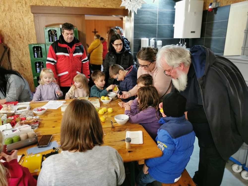 Am Sonntag, 20. Dezember fand der Weihnachtsmarkt in Grafenschachen beim Platz vor dem Verschönerungshaus statt. Speziell die Kinder freuten sich über die Bastelstation. Pfarrer Norbert Filipitsch hat dafür ein Bratapfelbrot gebacken.