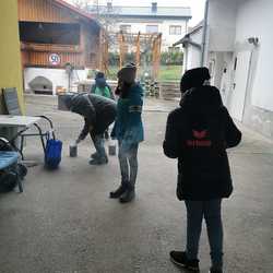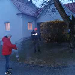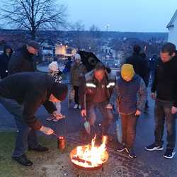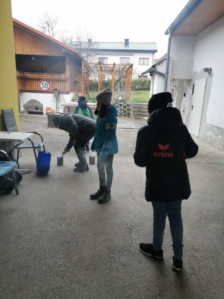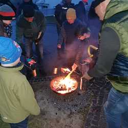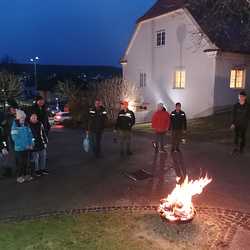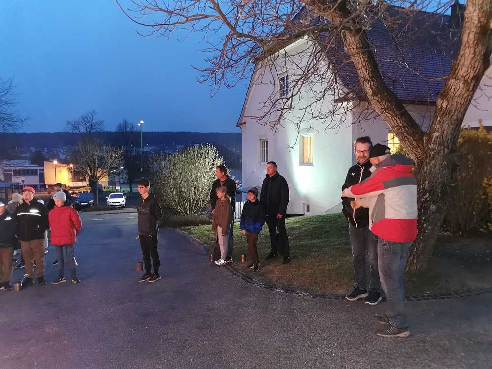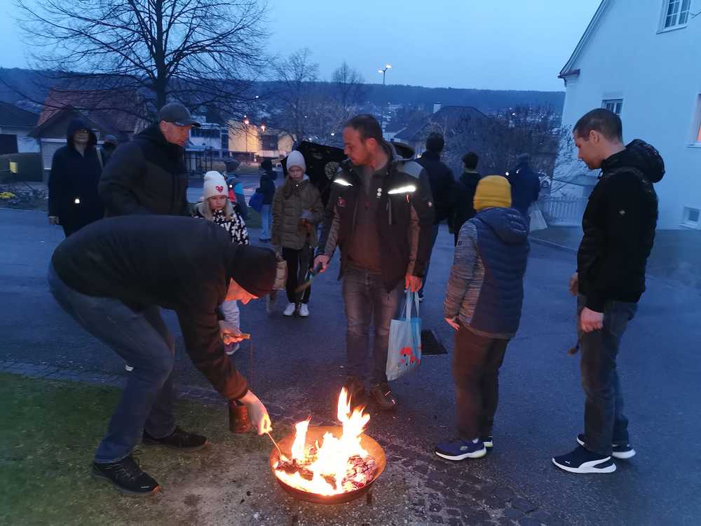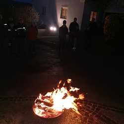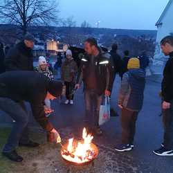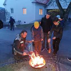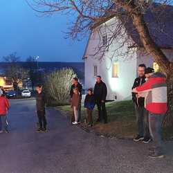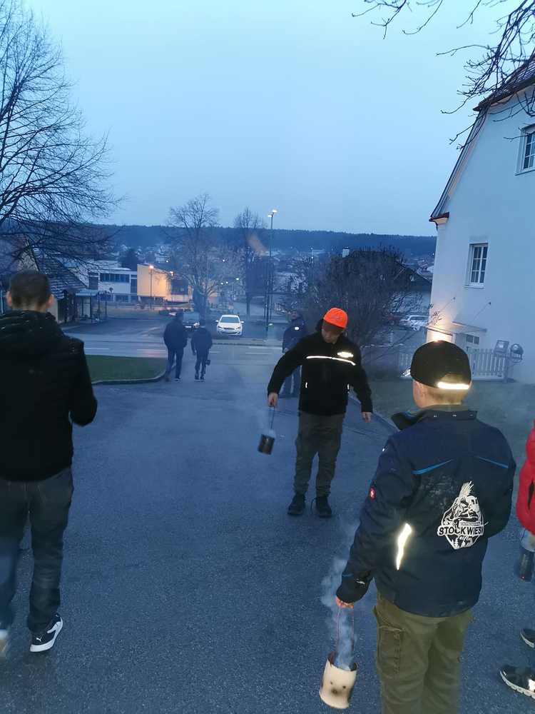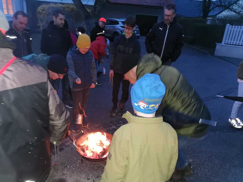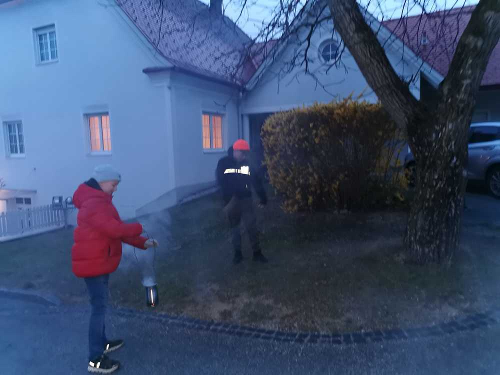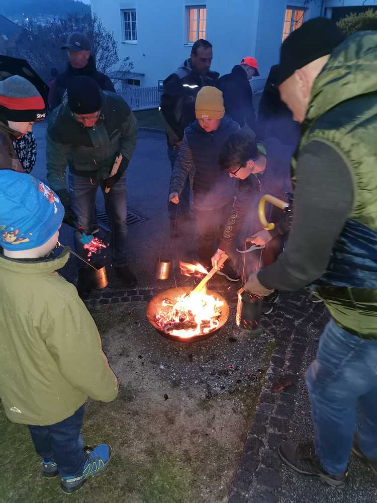 Am Karsamstag segnete Diakon Rudolf Exel um 6 Uhr das Feuer vor der Pfarrkirche. Im Anschluss trugen die Kinder das Feuer von Haus zu Haus um damit das Feuer in den Öfen wieder zu entzünden. Damit soll dann das Osteressen zubereitet werden.