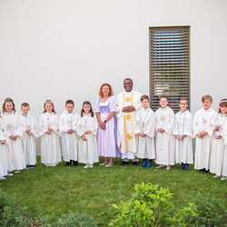 In unserer Pfarre gibt es für die Feier in der Kirche ein eigenes Erstkommunionkleid (Kutte) sowohl für Burschen als auch für Mädchen.