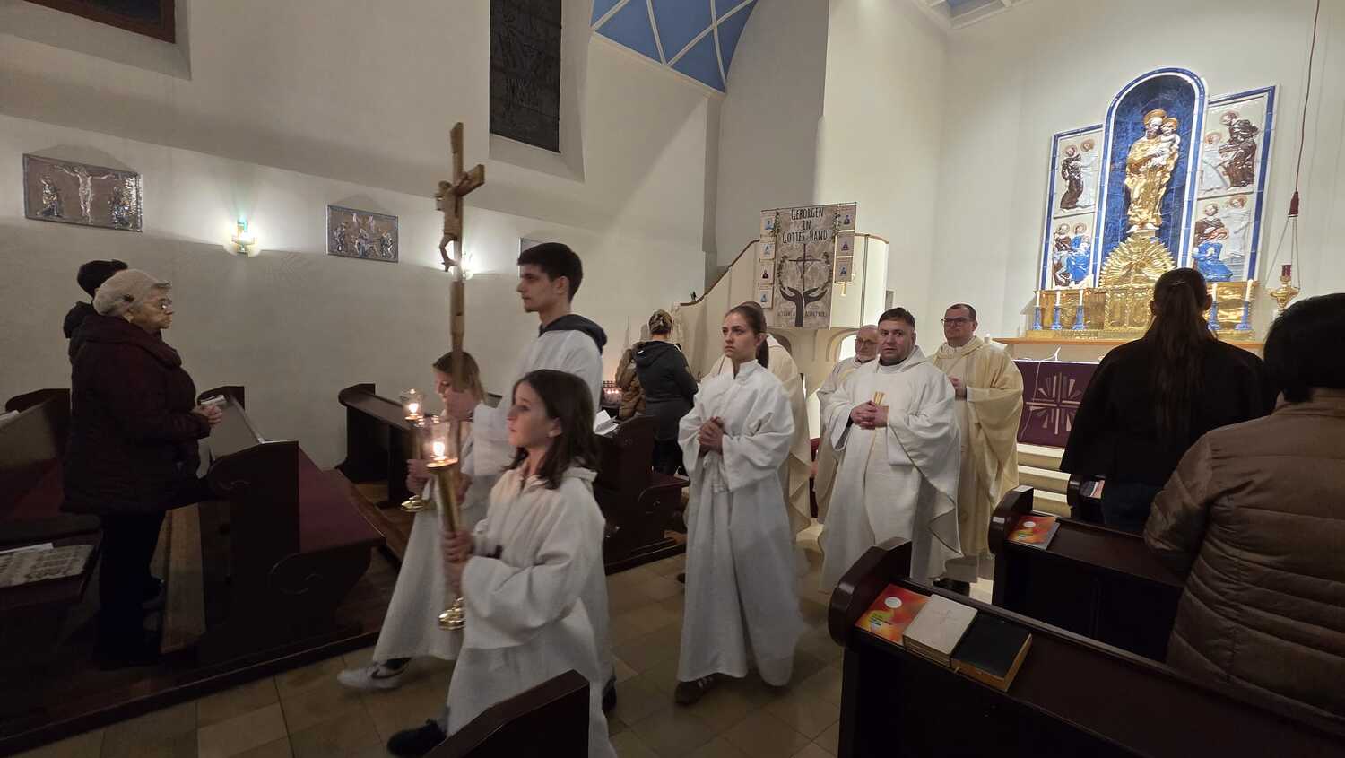 Am Hochfest des hl. Josef, dem 19. März 2026, feierte die Pfarre Güttenbach ihren Patron. Als Hauptzelebrant und Festprediger betonte Pfarrer Branko Kornfeind (Dürnbach) die Bedeutung des hl. Josef für die hl. Familie, für die ganze Kirche und für unsere Pfarre und unsere Familien. Der Chor HKDejci gestaltete den Festgottesdienst musikalisch, ebenso ein schwungvoller Chor der Kinder. P. Adalbert Gaspar (Unterwart) konzelbrierte mit unseren Priestern Marko Zadravec und Kurt Aufner bei der Festmesse, unterstützt von unseren Ministranten.