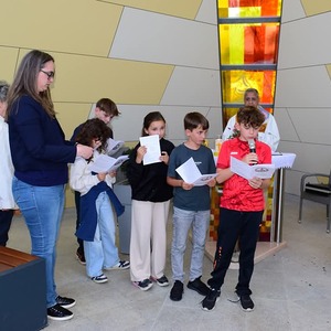 "Hohlweg" hinauf zur Kreuzkapelle, wo die Messe von Pfarrer Thomas gefeiert wurde.