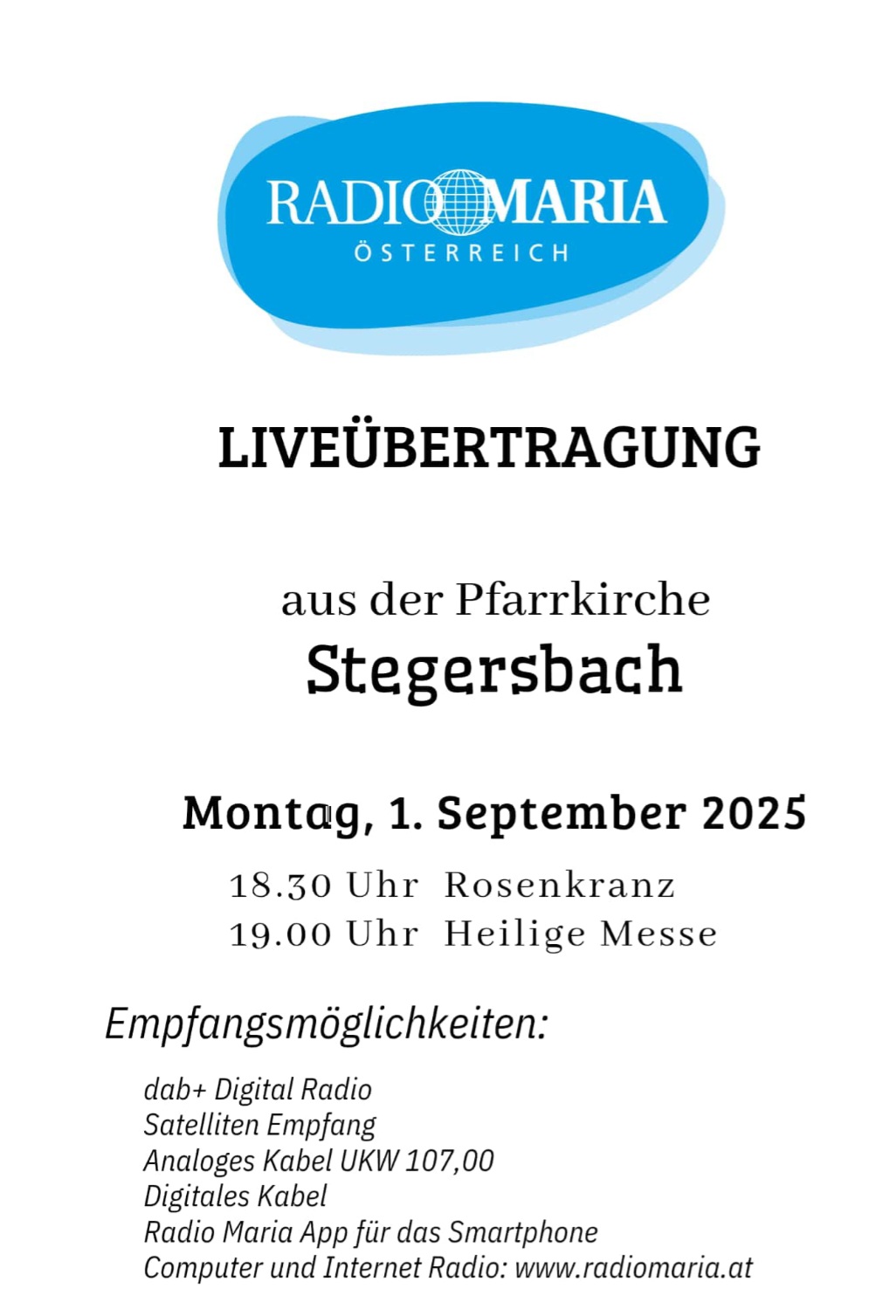 Gottesdienstübertragung durch "Radio Maria-01.09.2025"
