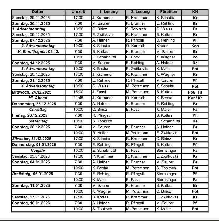 Gottesdienstordnung Stegersbach/Ollersdorf